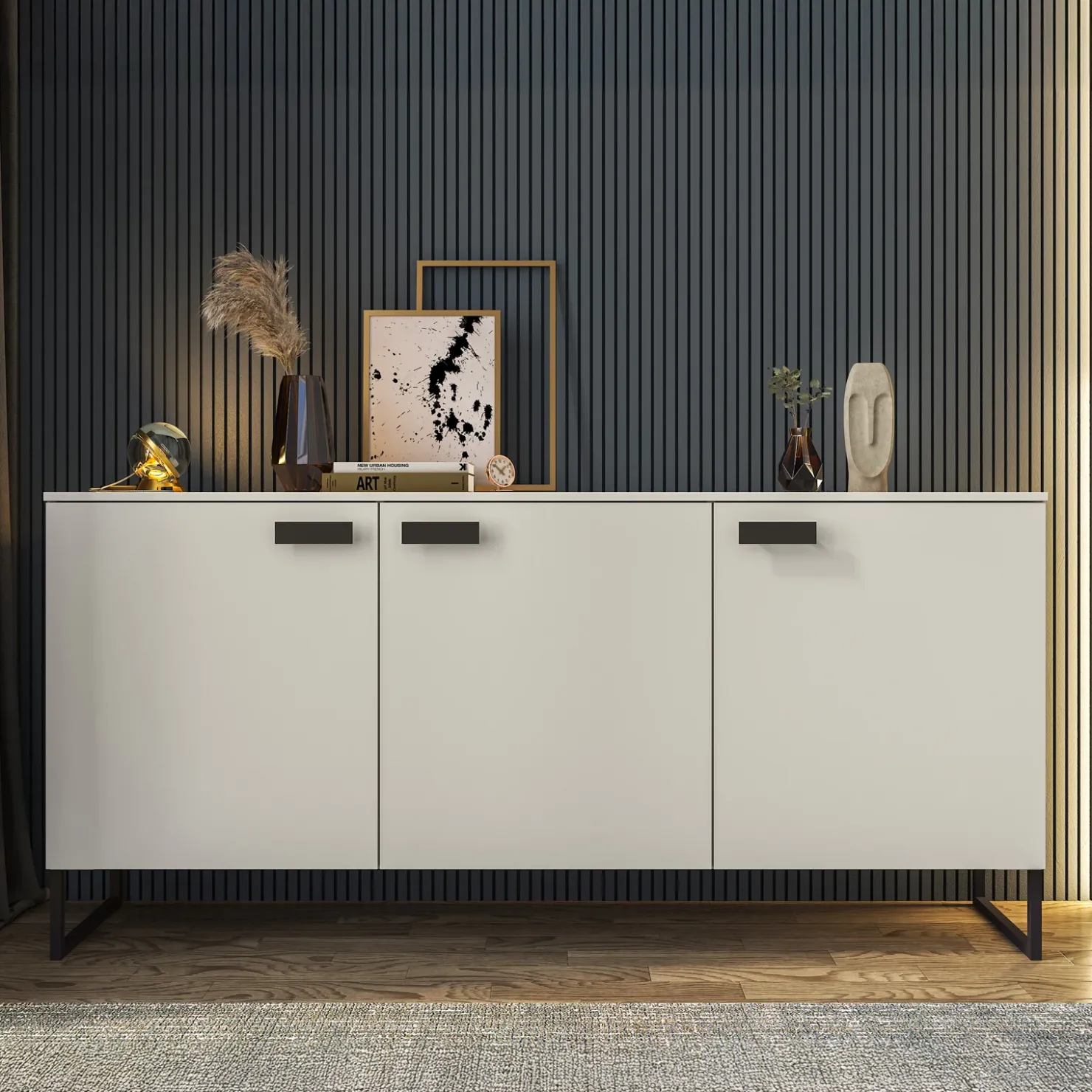 Garnero Arredamenti Madia 184x87h cm 3 ante moderna beige cashmere nero Casmira Best