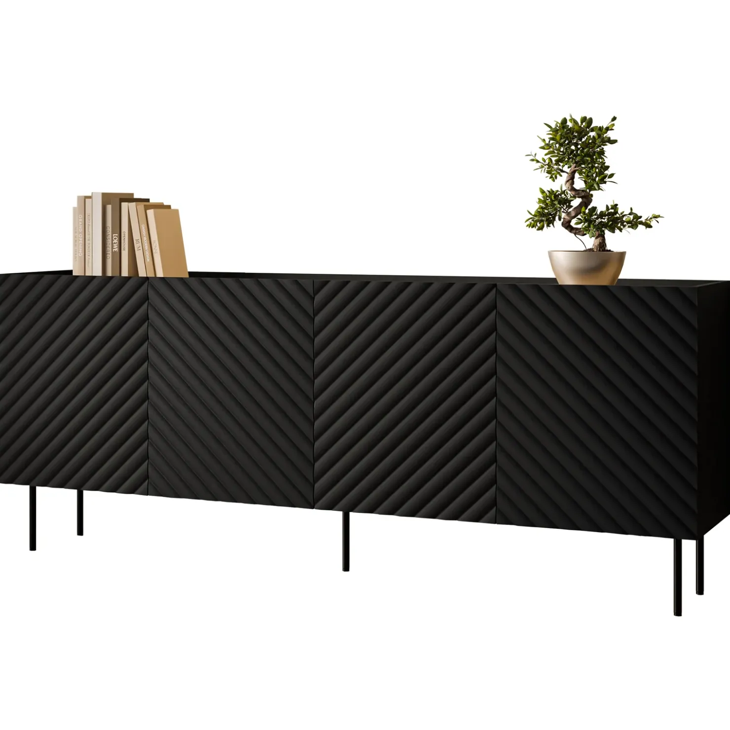 Se cerchi un mobile che sappia combinare ordine, stile e tanto spazio, la Madia 4 ante Daniele è proprio ciò di cui hai bisogno. Con la sua finitura nero opaco e i frontali decorati, questo mobile non è solo funzionale, ma aggiunge un tocco di eleganza discreta a qualsiasi soggiorno. Le sue quattro ante senza maniglie, con frontali leggermente sporgenti, si aprono con un gesto semplice e fluido, rivelando ben otto vani interni, separati da quattro ripiani. Grazie a questa generosa capacità, avrai spazio a volontà per sistemare ogni cosa: dai libri e piatti a cavi e accessori tecnologici, senza mai sacrificare l’ordine. Ogni vano è pensato per ottimizzare lo spazio e rendere facile l’accesso agli oggetti di tutti i giorni. Immagina la superficie superiore della madia come la tela perfetta per le tue decorazioni: un angolo accogliente dove esporre fotografie, piante rigogliose o oggetti che raccontano la tua storia. La Madia 4 ante Daniele non è solo un mobile, ma una vera e propria dichiarazione di stile. I piedini in metallo nero completano il look con un tocco contemporaneo, sollevando la madia da terra e facilitando la pulizia. Elegante, pratica e capiente, la Madia 4 ante Daniele è il mobile che trasforma il tuo soggiorno in un rifugio organizzato e stiloso.