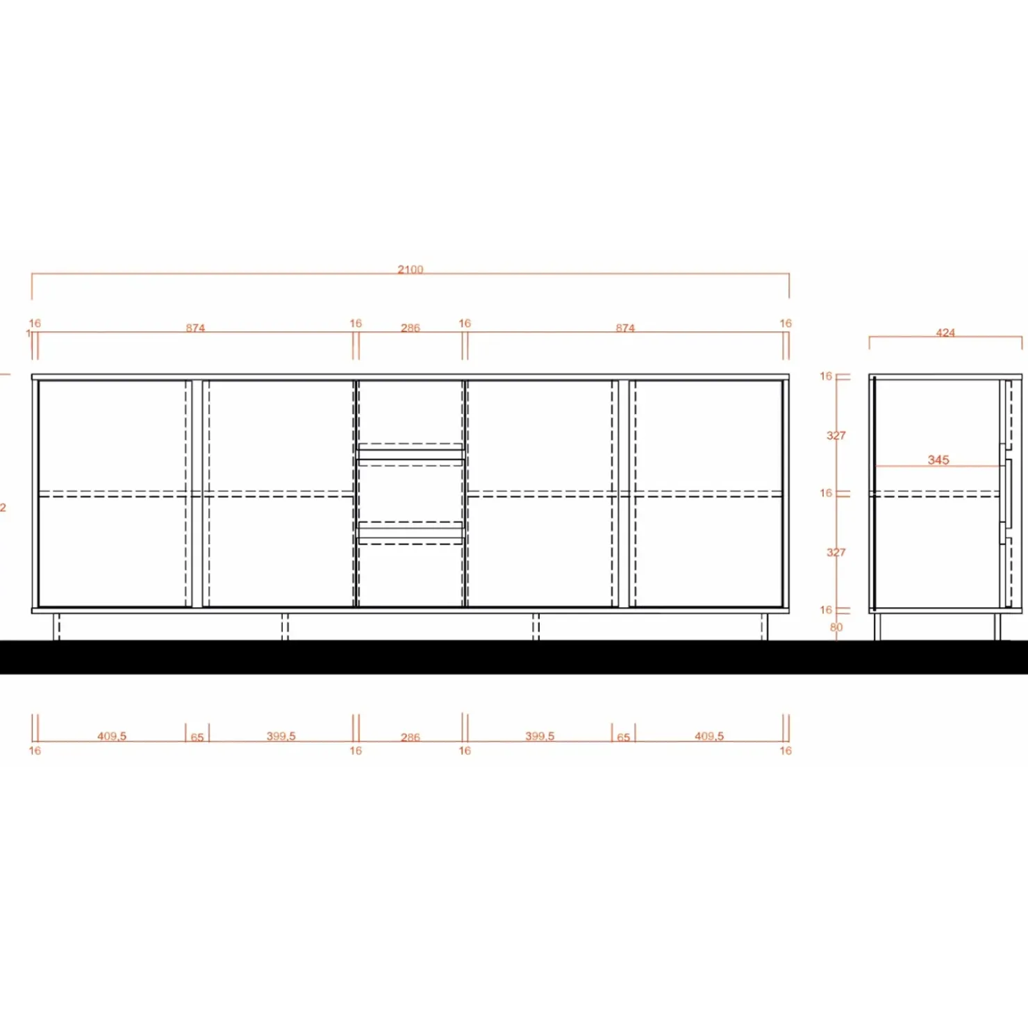 Madia moderna 4 ante 3 cassetti 210x79cm bianco lucido Spirit