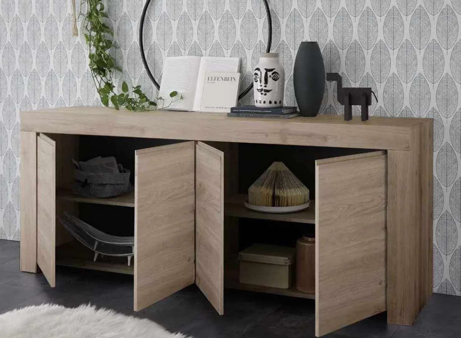 Garnero Arredamenti Madia 210x81h cm 4 ante soggiorno moderna chiaro Halston Rovere New