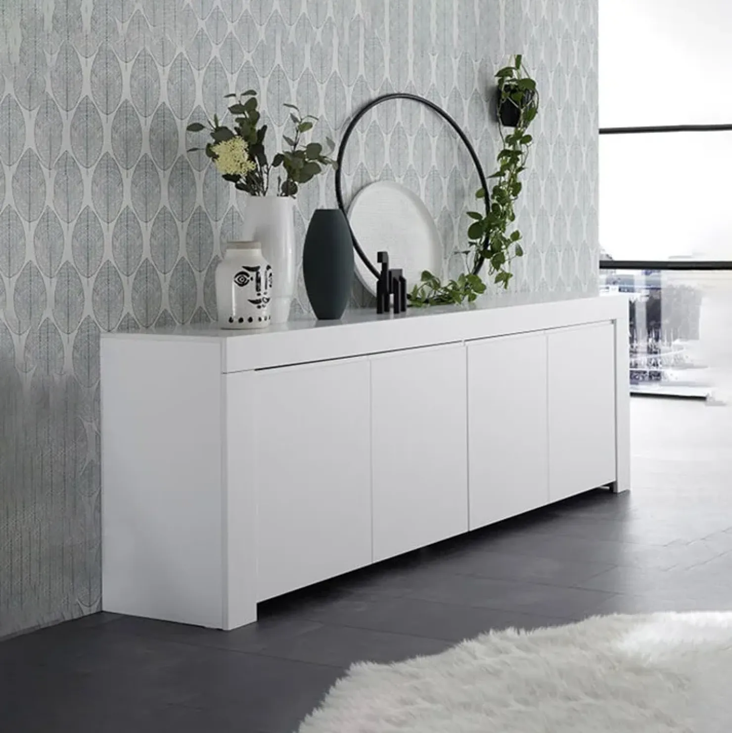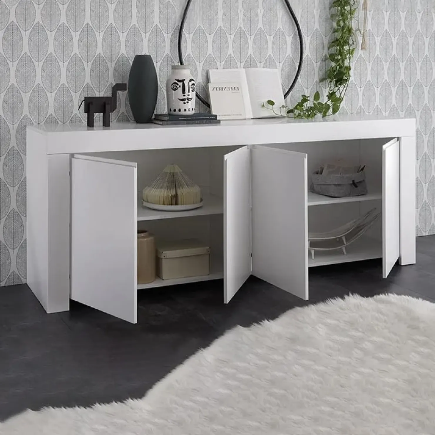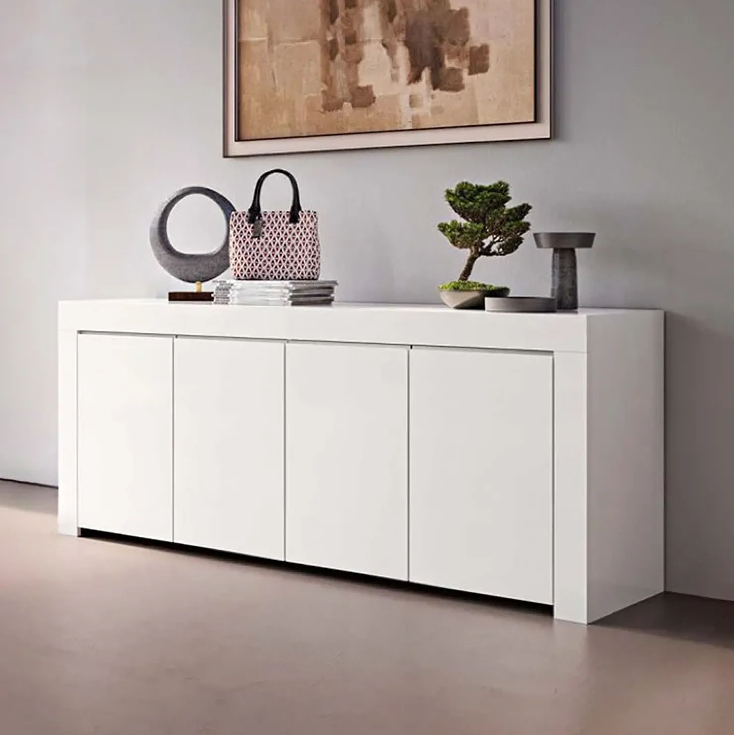 Madia 4 ante soggiorno moderna 210x81cm bianco opaco Halston