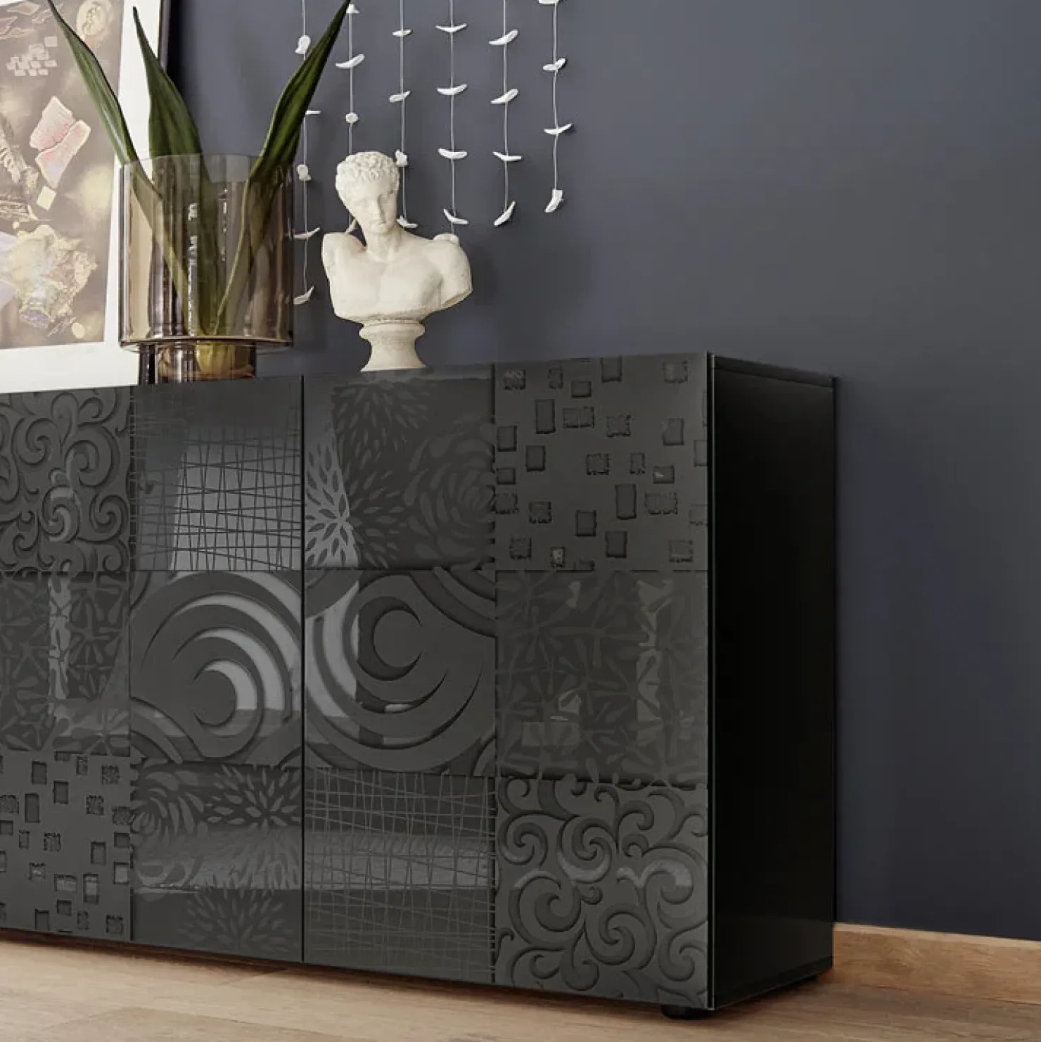 Garnero Arredamenti Madia 241x84h cm 4 ante moderna grigio scuro con serigrafia Paradise Antracite Hot