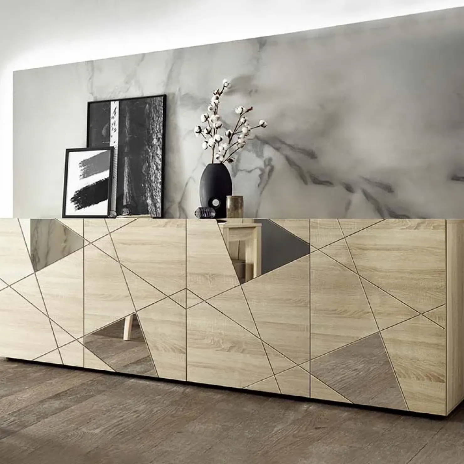 Garnero Arredamenti Madia 241x84h cm 4 ante moderna samoa specchio con serigrafia Olimpo Rovere Hot
