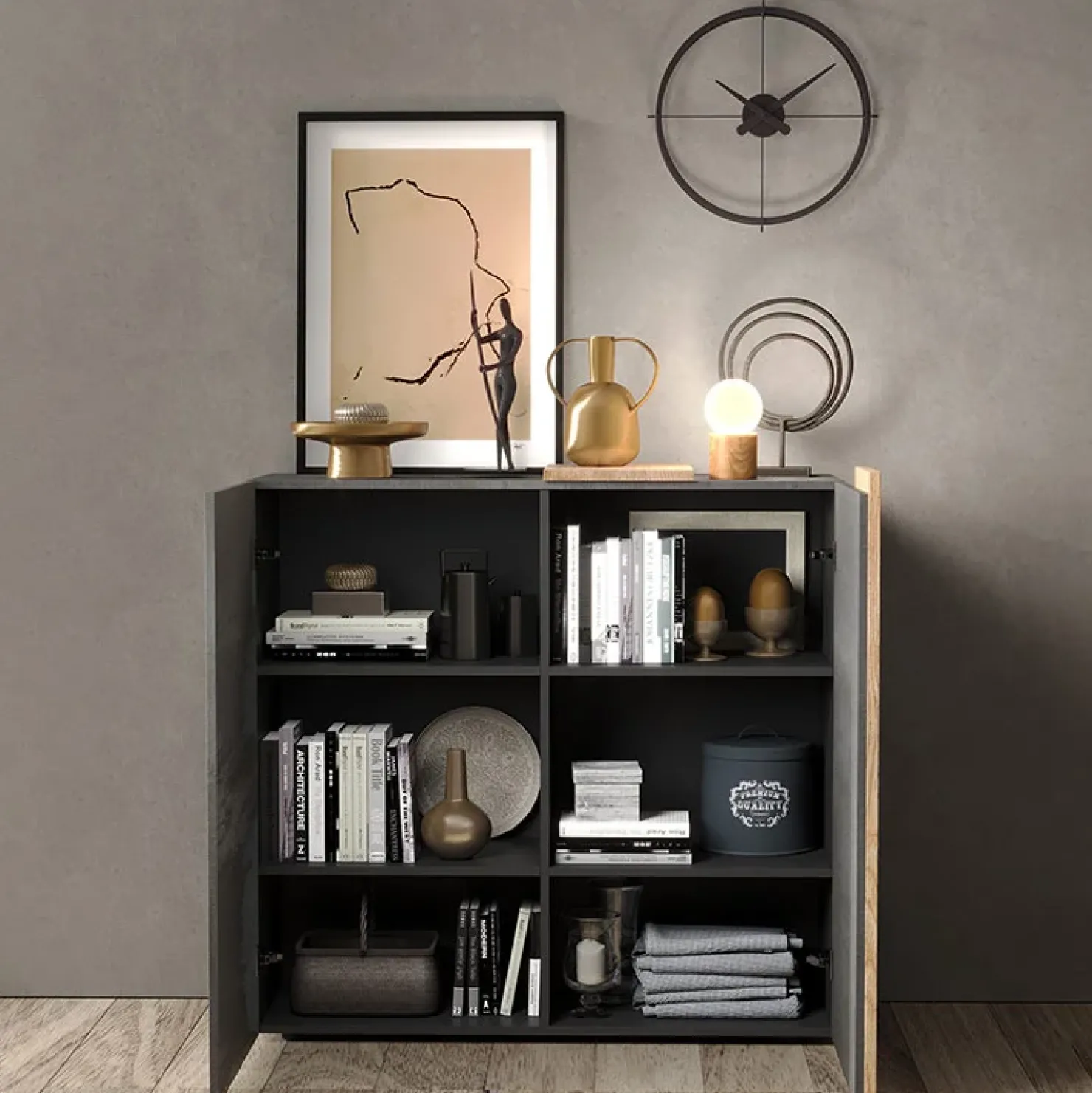Garnero Arredamenti Madia alta 121x113h cm 2 ante moderna titanio rovere Universal Antracite – Rovere New