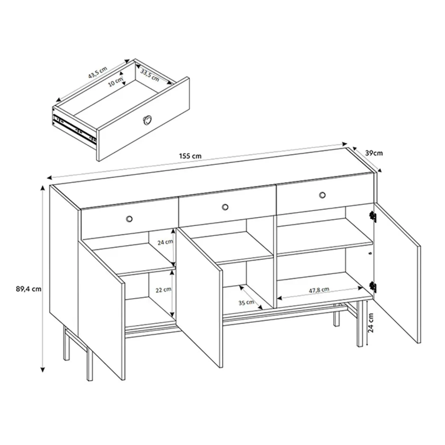 - dimensioni: L.155 x H.89.4 x P.39 cm
