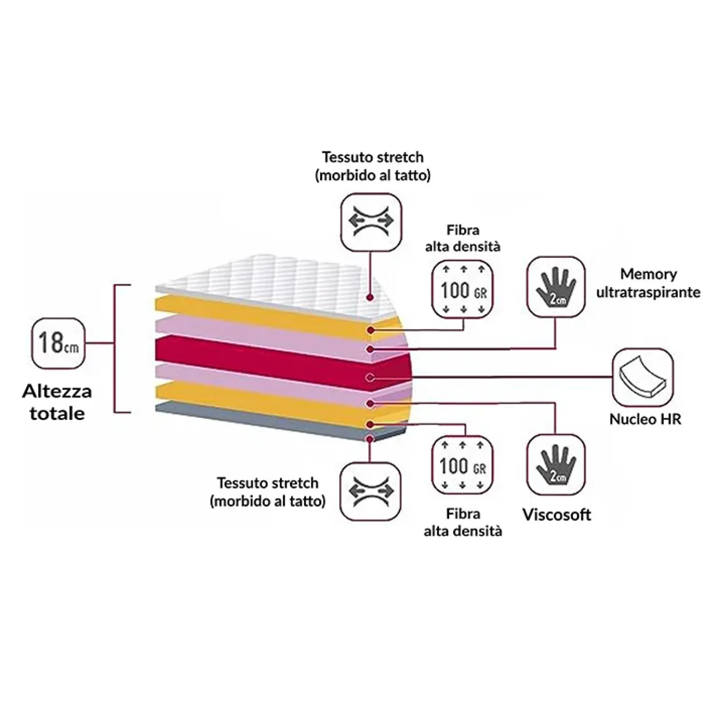 Materasso matrimoniale 160x190cm memory lato estivo e invernale H. 18cm Basic Dream 50