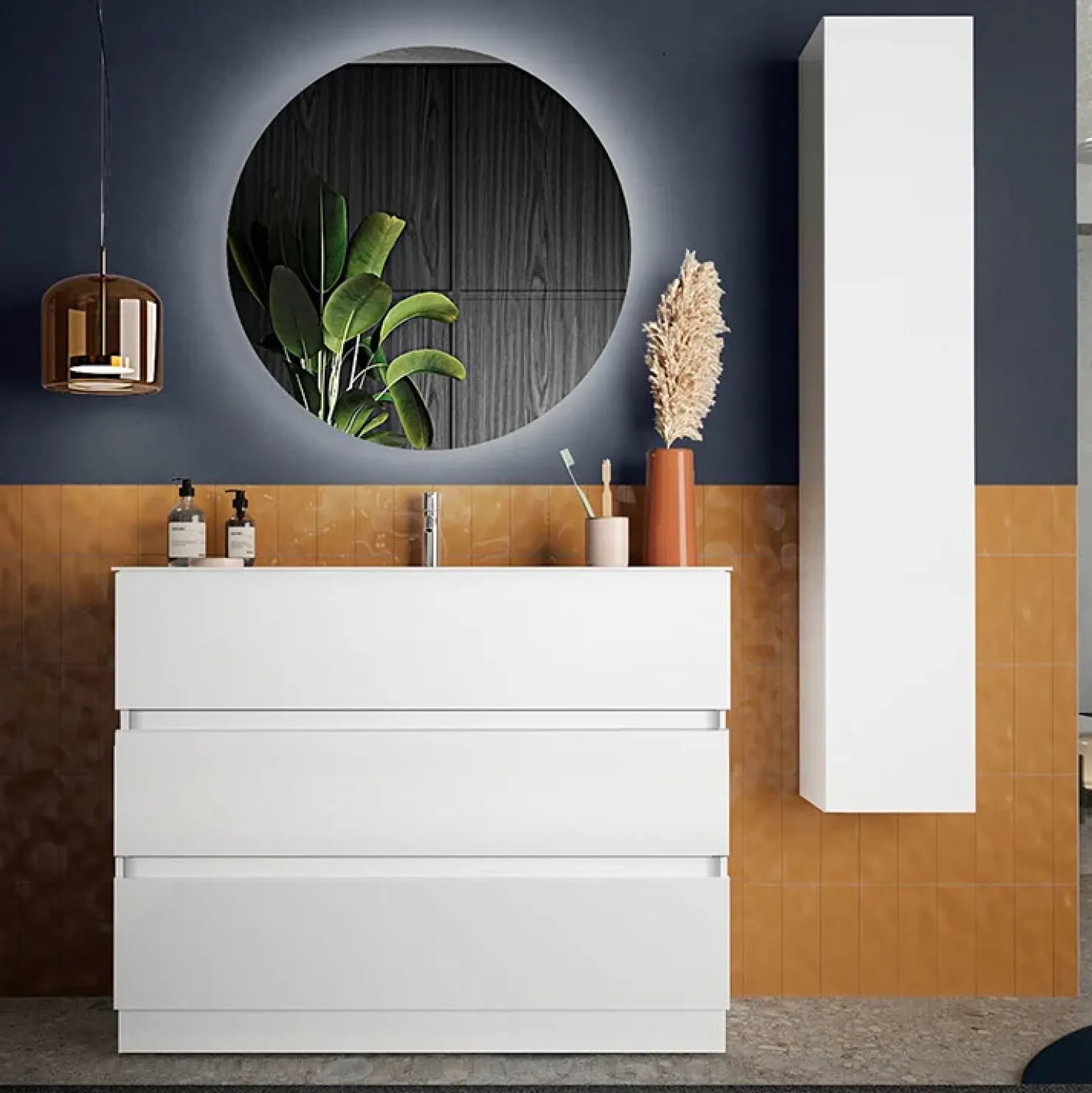 Per abbellire il tuo bagno, questo mobile, è abbinato ad un fantastico specchio rotondo che impreziosirà subito la stanza e ti permetterà di effettuare gli ultimi ritocchi prima di uscire.