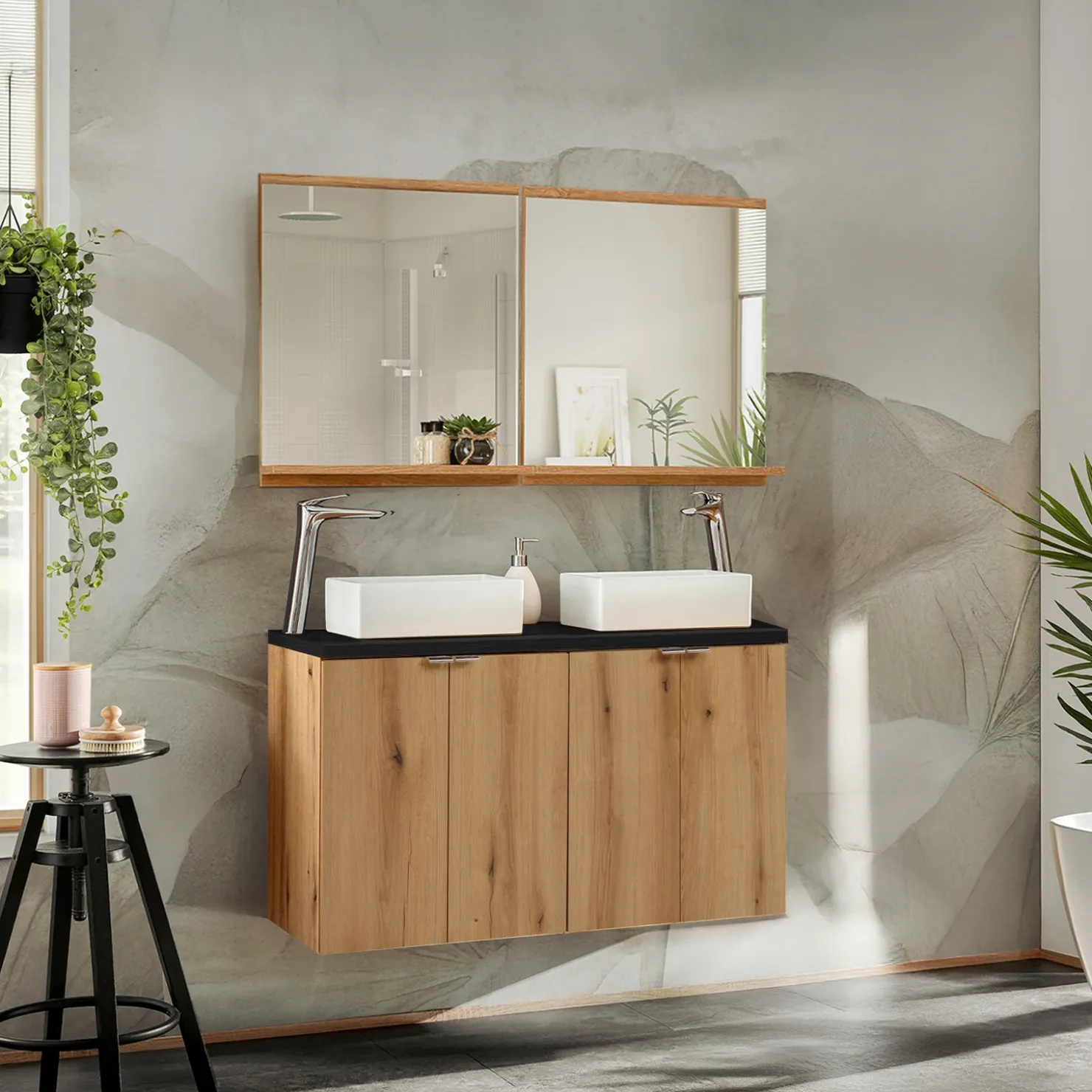 Mobile bagno sospeso 100cm 4 ante rovere nero Rovery