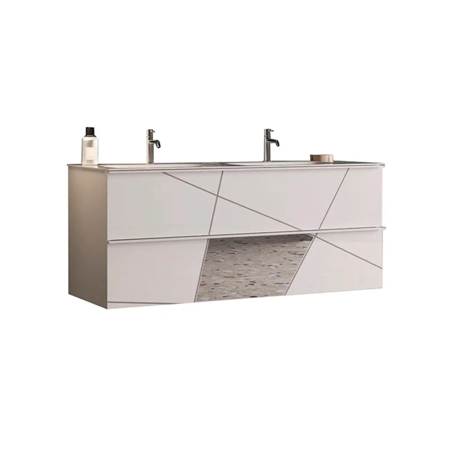 Garnero Arredamenti Mobile bagno sospeso 120cm con doppio lavabo bianco lucido specchi Olimpo Online