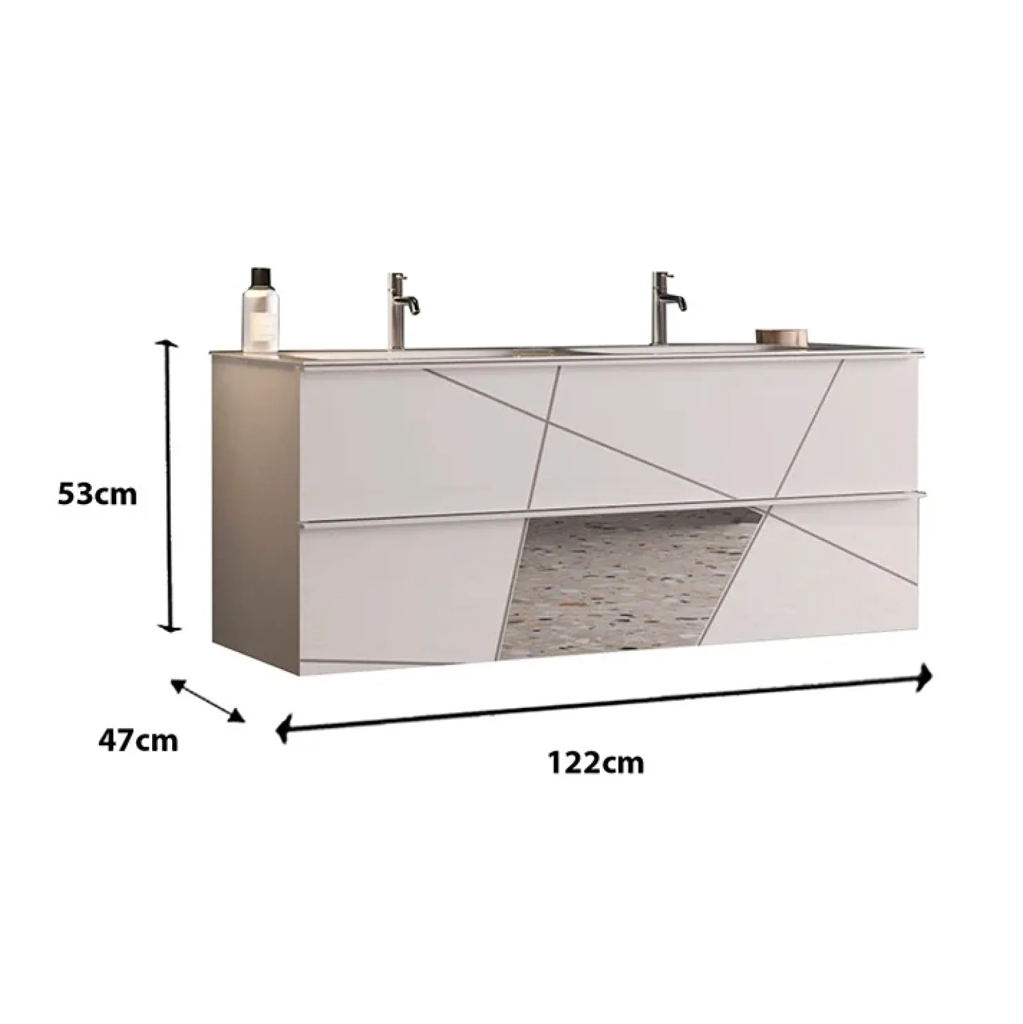 Mobile bagno sospeso con doppio lavabo moderno 120x51cm bianco lucido specchi Olimpo
