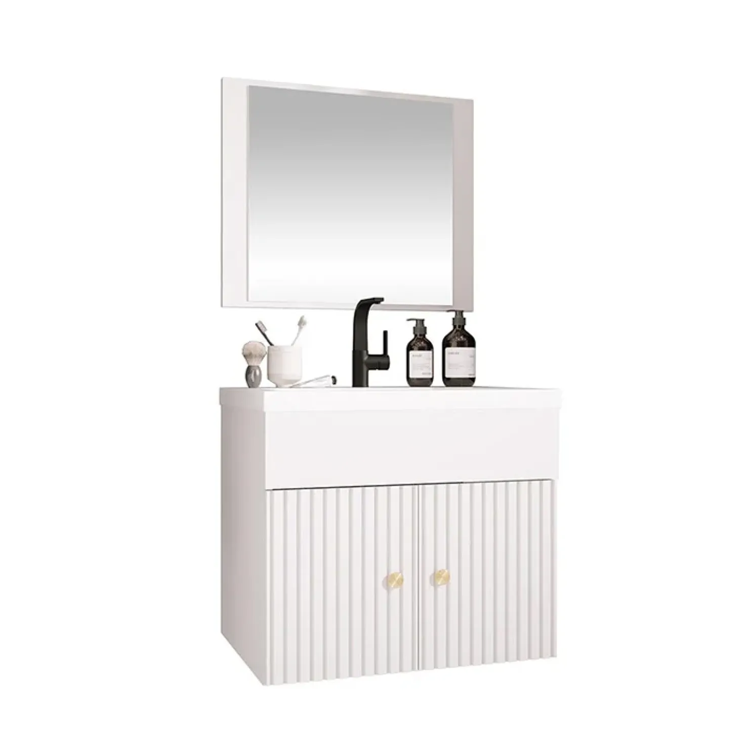 Garnero Arredamenti Mobile bagno sospeso 60cm con specchio serigrafato bianco Ischia 5 Bianco Lucido New