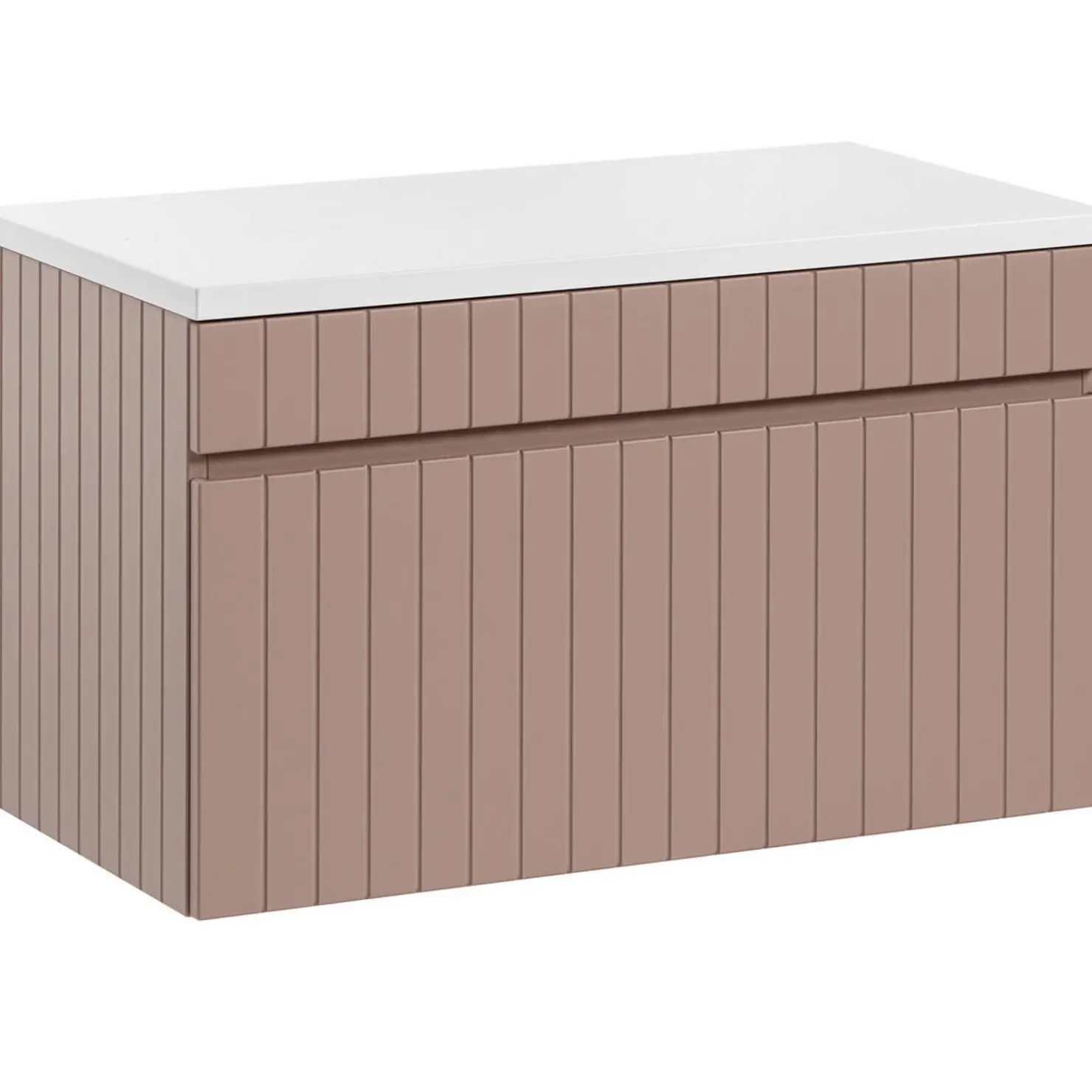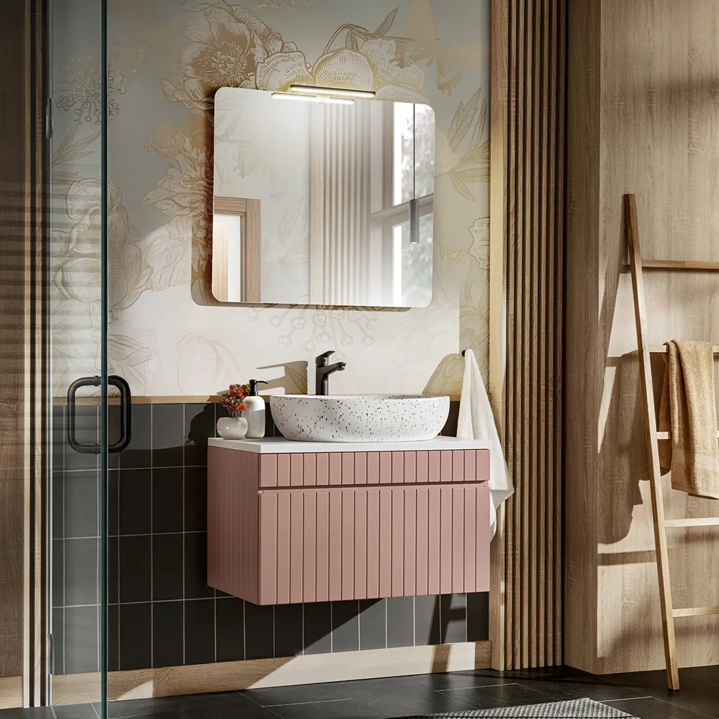 Mobile bagno sospeso 80cm cannettato 1 cassettone rosa Autentic