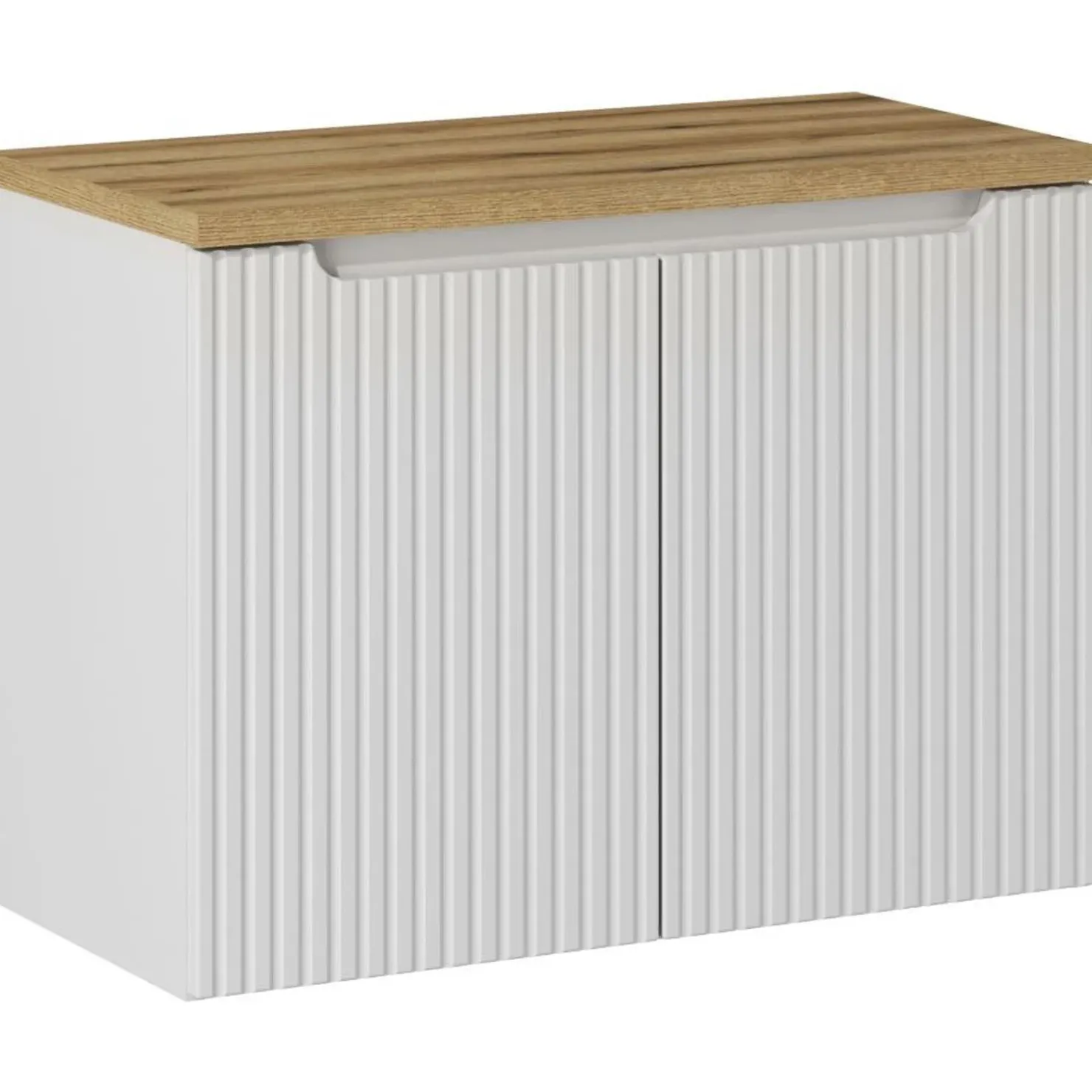 Mobile bagno sospeso 80cm cannettato 2 ante bianco rovere Cleany