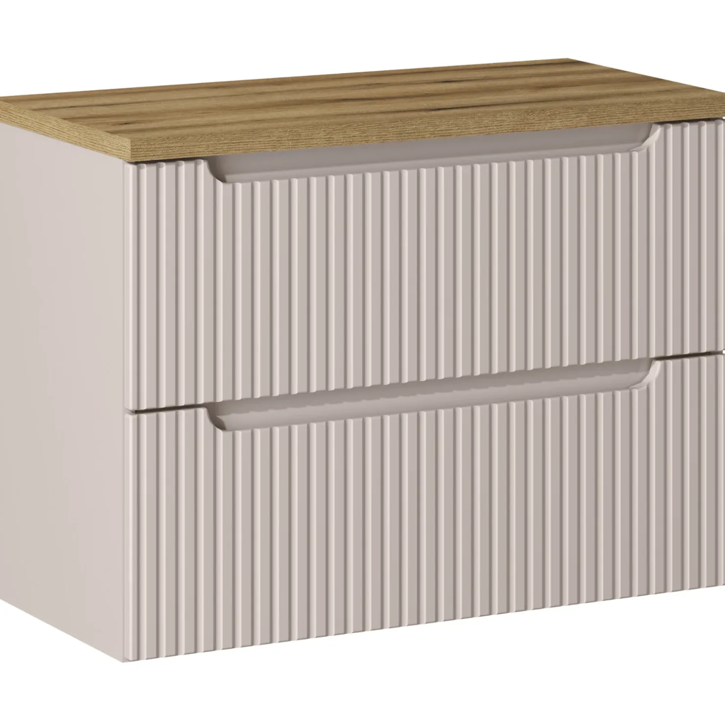 Mobile bagno sospeso 80cm cannettato 2 cassetti beige rovere Cleany