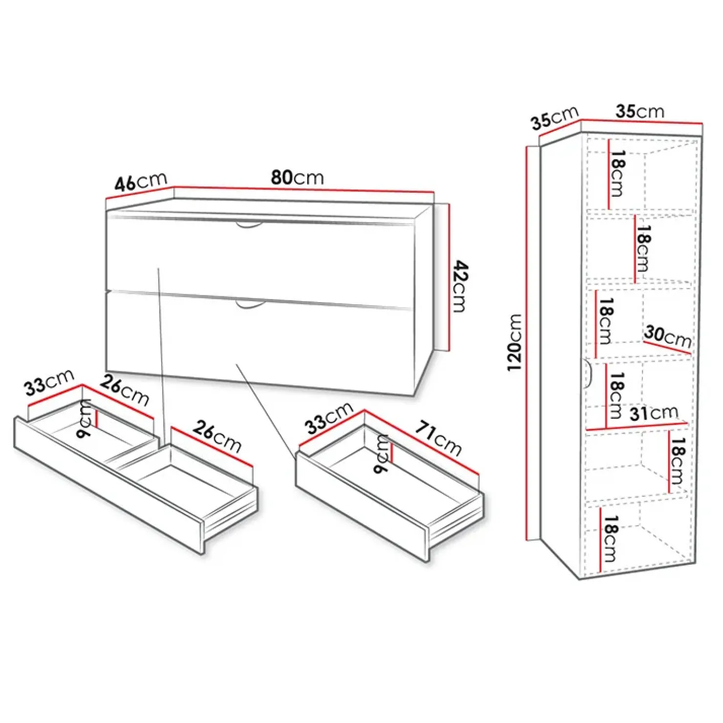 - dimensioni armadio sospeso: L.80 x H.74 x P.46 cm