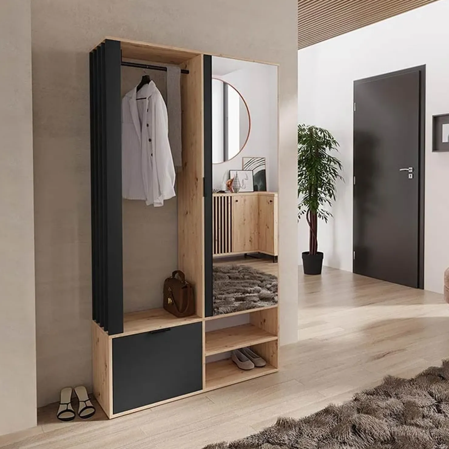 Mobile ingresso 100x190cm con specchio rovere nero Umea