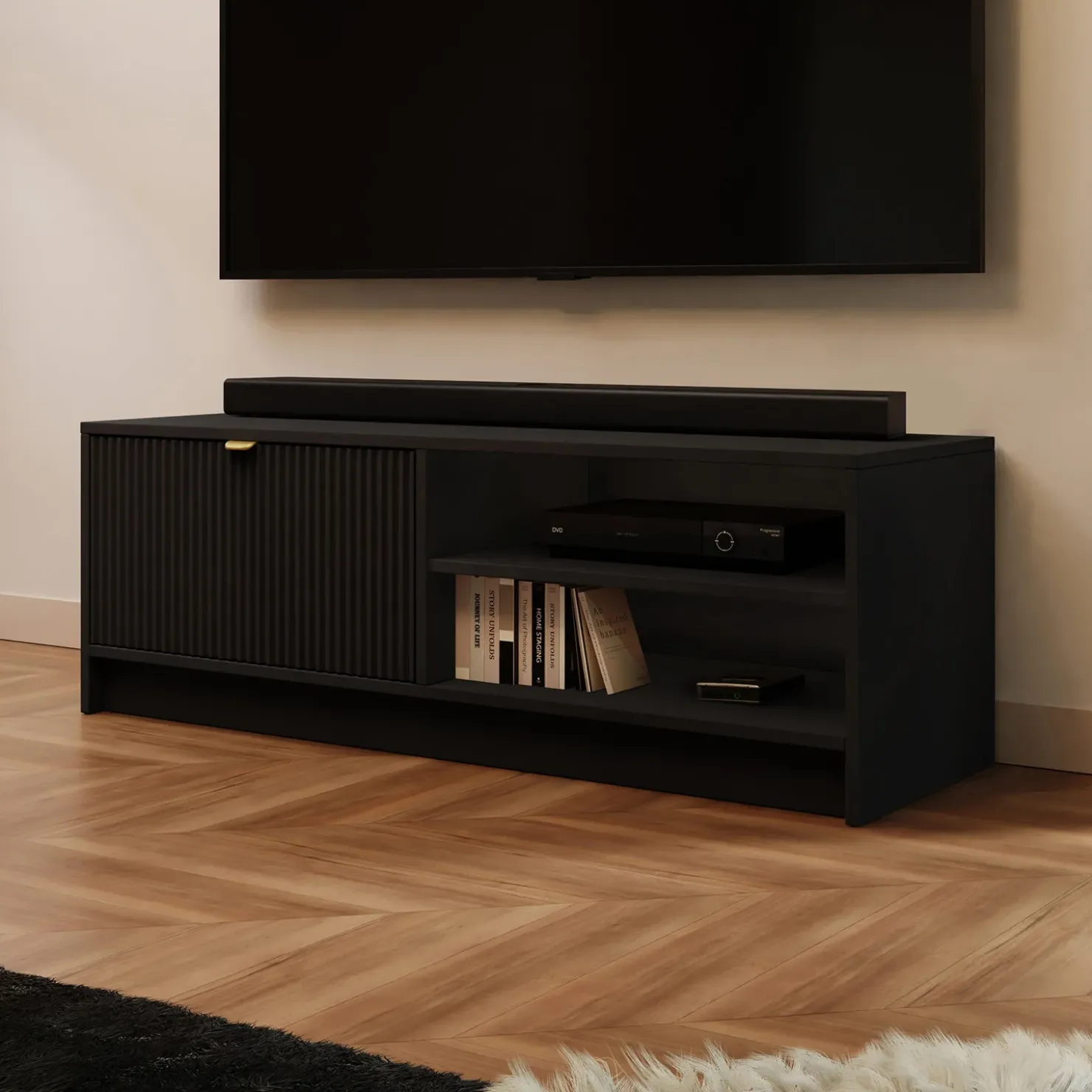 Garnero Arredamenti Mobile porta tv 120x40h cm 1 anta 2 vani a giorno cannettato nero Athena Nero Opaco Clearance