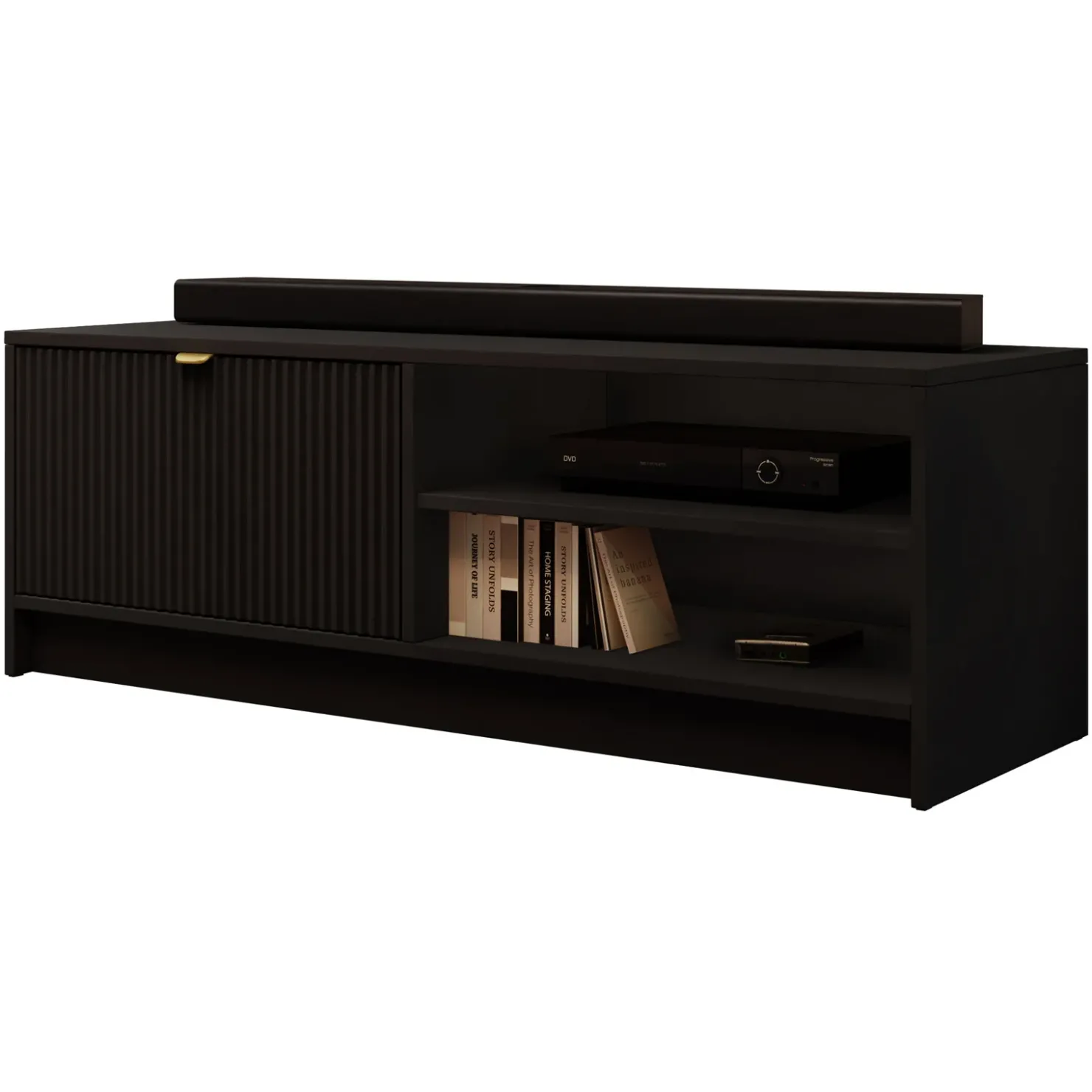 Mobile porta tv 120x40h cm 1 anta 2 vani a giorno cannettato nero Athena
