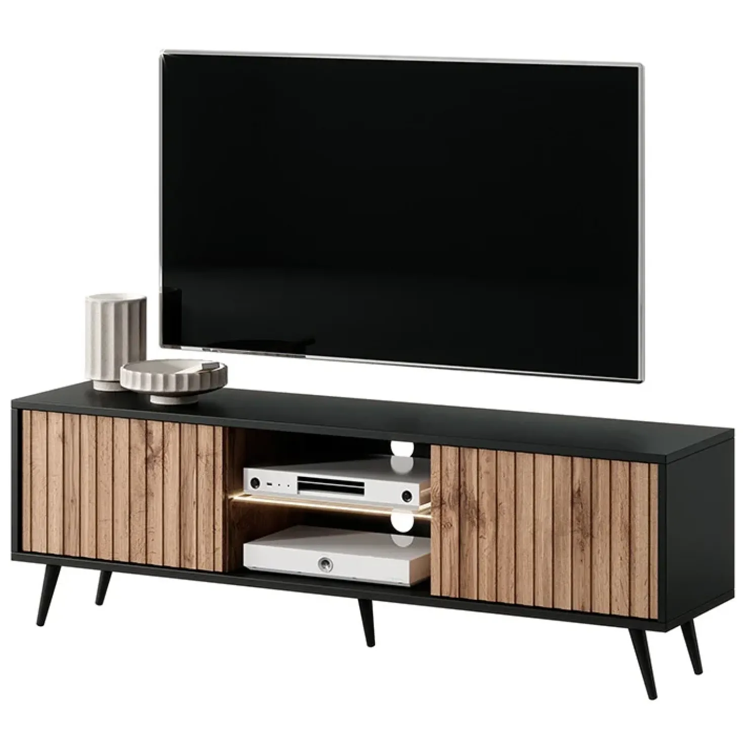 Garnero Arredamenti Mobile porta TV 135x45h cm 2 ante rovere cannettato nero Celestia Rovere Rustico – Nero opaco Outlet