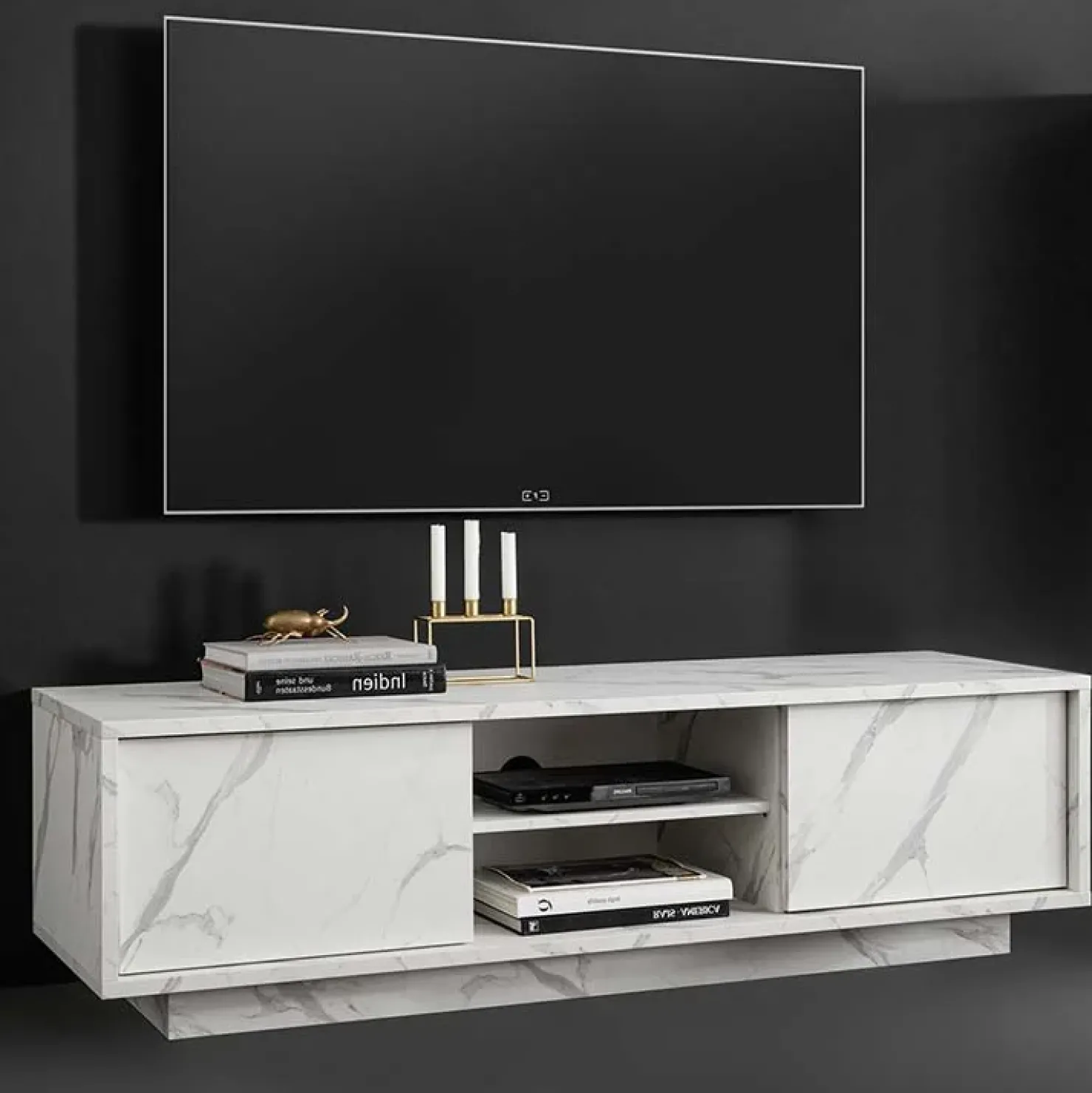 Porta tv soggiorno 2 ante 139x44cm effetto marmo bianco Viking, dal design ricercato e moderno, regala classe e praticità al tuo spazio tv.