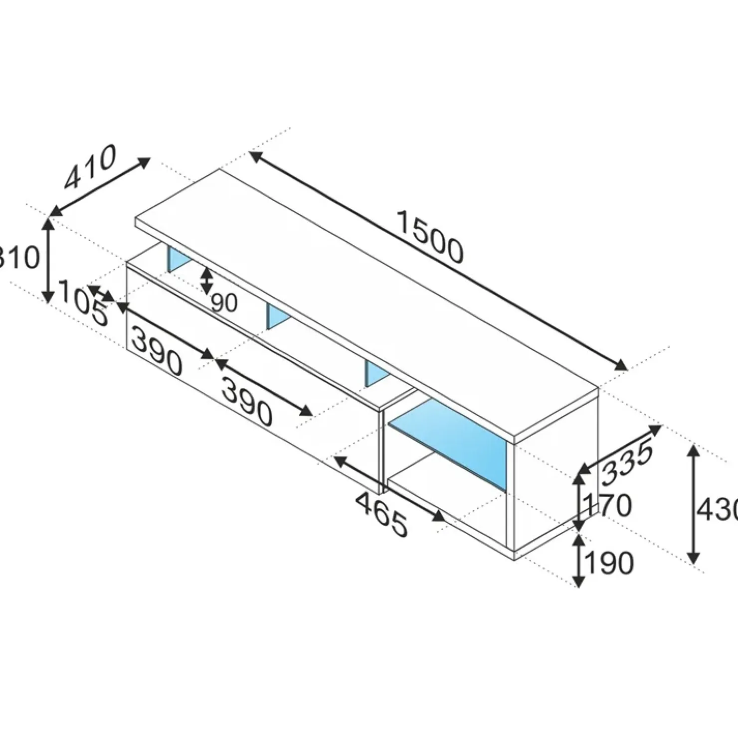 | Dimensioni | L.150 x H.43 x P.41 cm |
