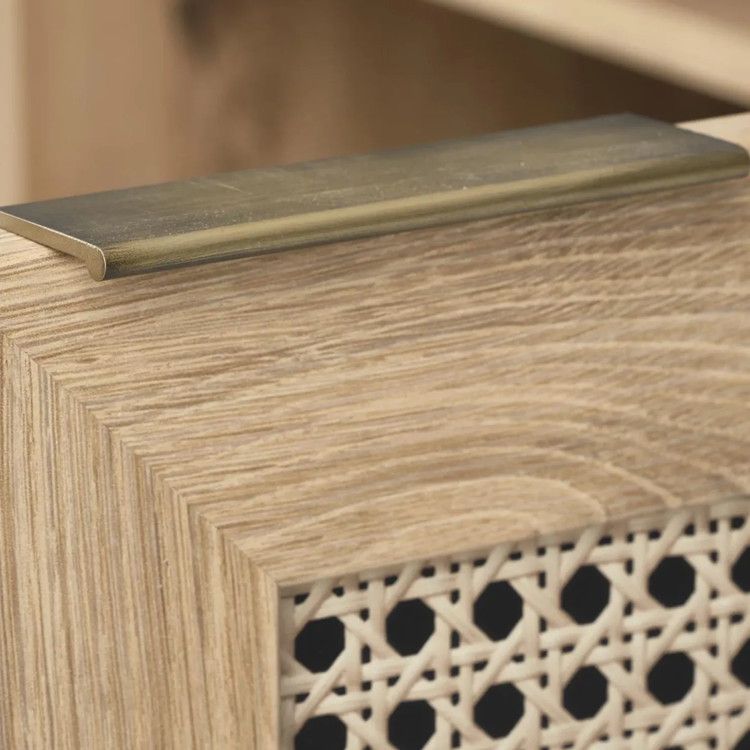 Il mobile porta TV Sombra è la soluzione ideale per chi cerca un elemento pratico e coordinato con stile. Realizzato con finitura rovere e nero, si inserisce armoniosamente in ambienti boho, scandinavi o moderni, aggiungendo un tocco caldo e contemporaneo alla zona living. La composizione presenta 2 vani a giorno centrali, perfetti per riporre decoder, console o dispositivi multimediali, e 2 ante laterali con maniglie che celano spazi utili per organizzare cavi, accessori o altri oggetti fuori vista. Le linee pulite e il contrasto tra spazi aperti e chiusi conferiscono equilibrio e funzionalità.