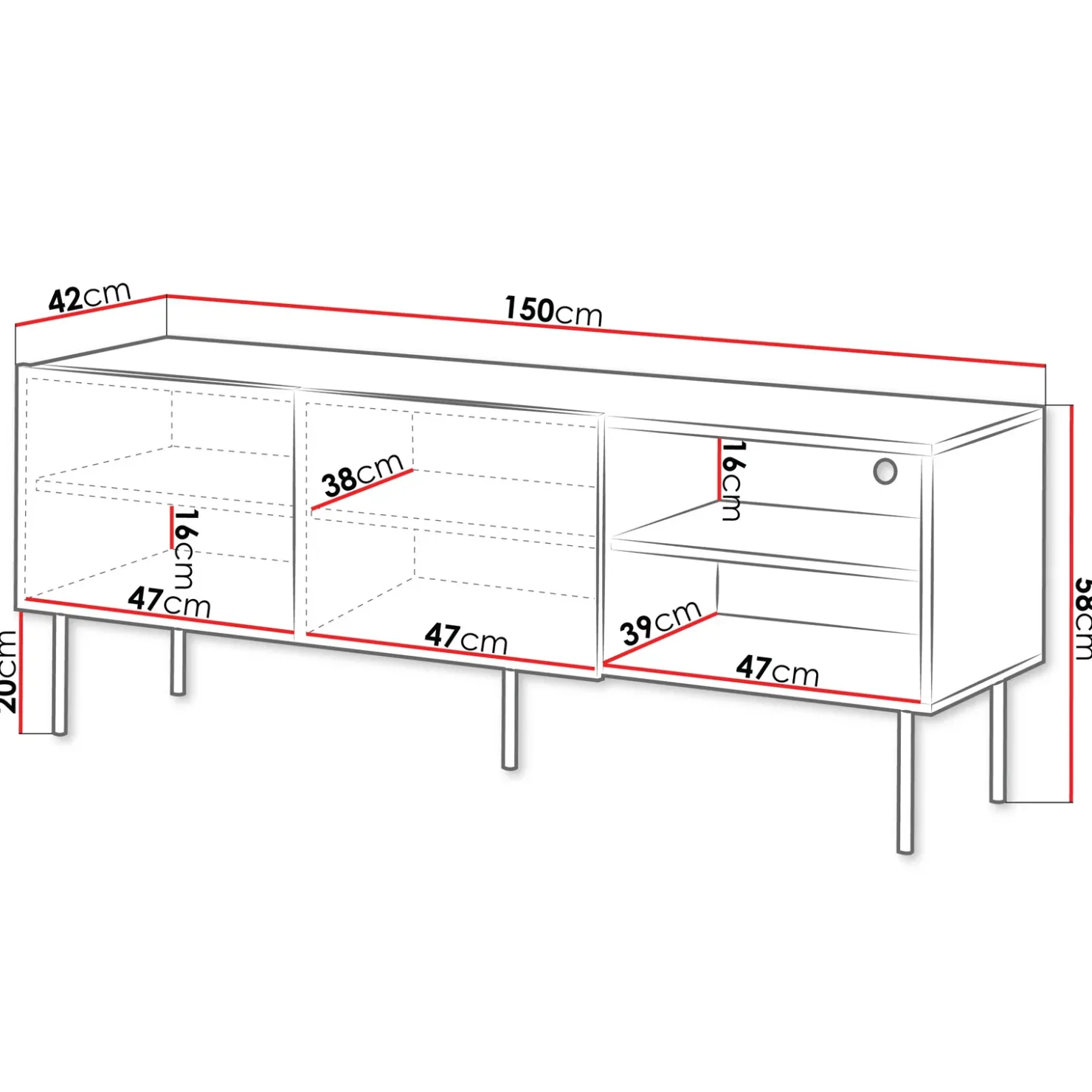 | Dimensioni | L.149,8 x H.57,6 x P.41,7 cm |