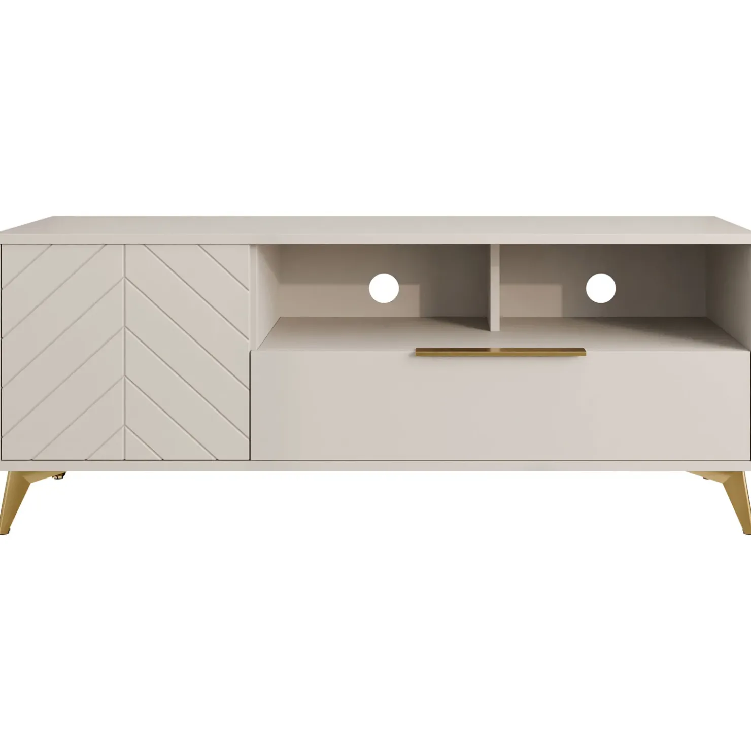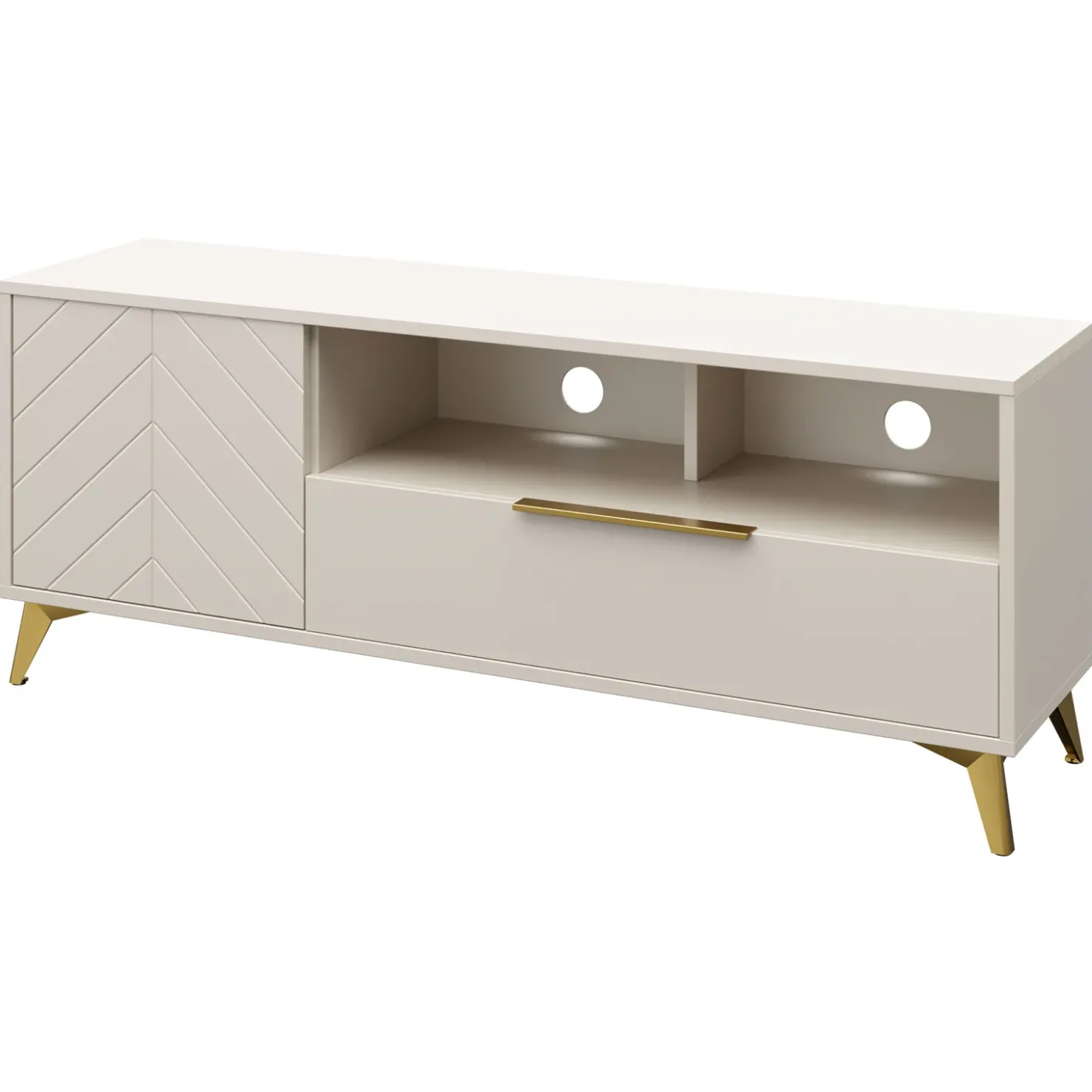 Mobile porta TV 154x60cm 1 anta 1 cassetti 2 vani a vista beige con frontali serigrafati Miriam
