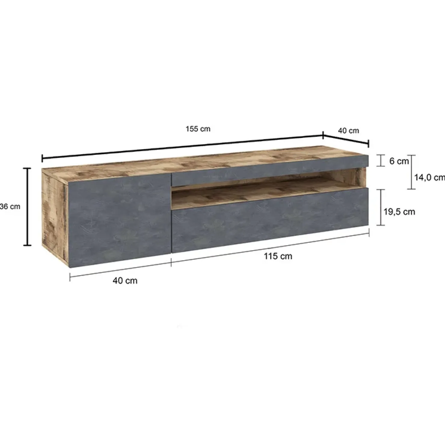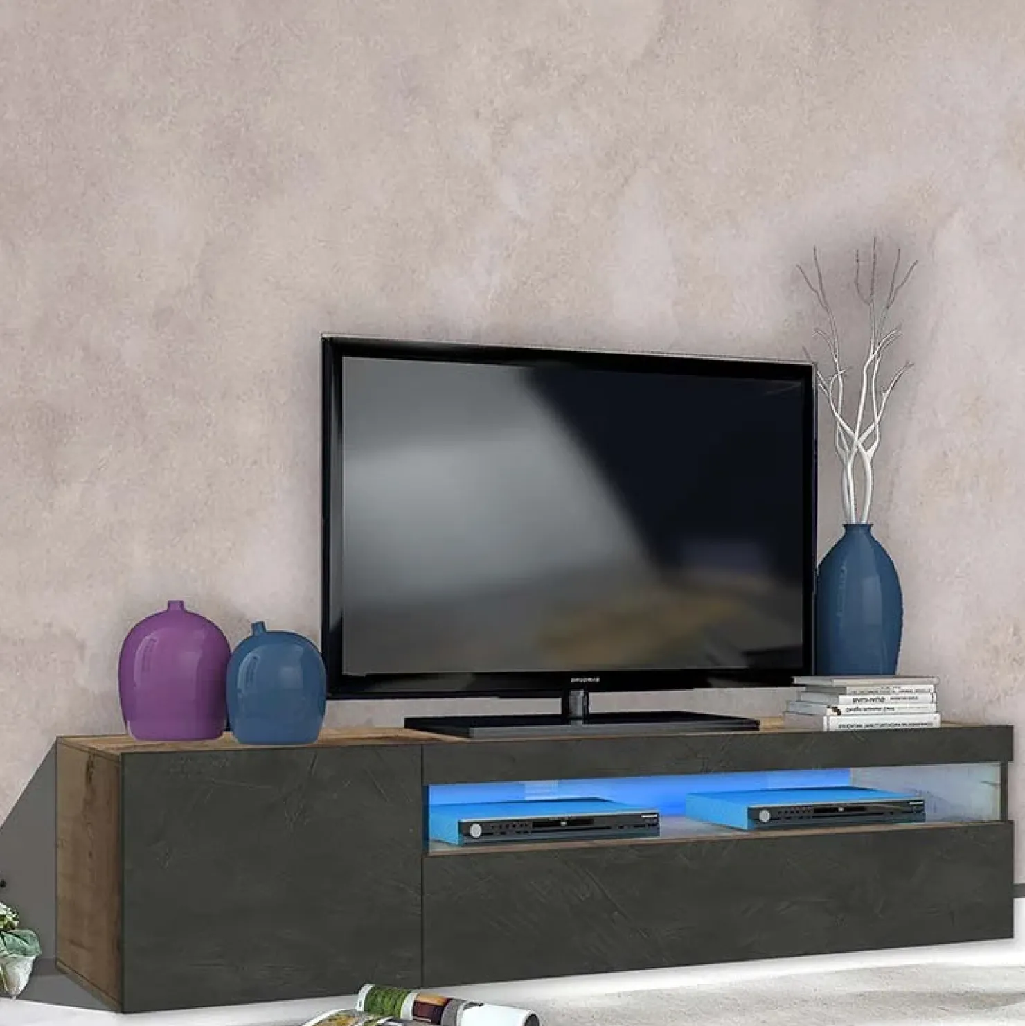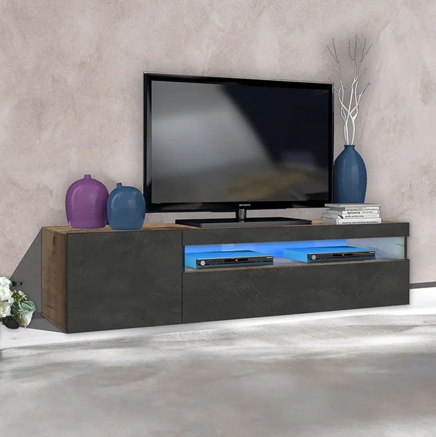 Garnero Arredamenti Mobile porta TV 155x37h cm 1 anta antracite Light Small Gihome® Antracite – Rovere Clearance