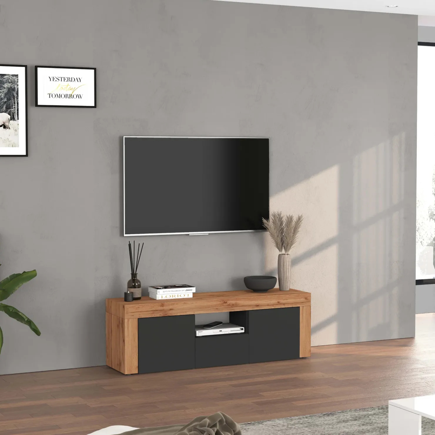 Garnero Arredamenti Mobile porta tv 155x51h cm antracite rovere Block Antracite – Rovere Online