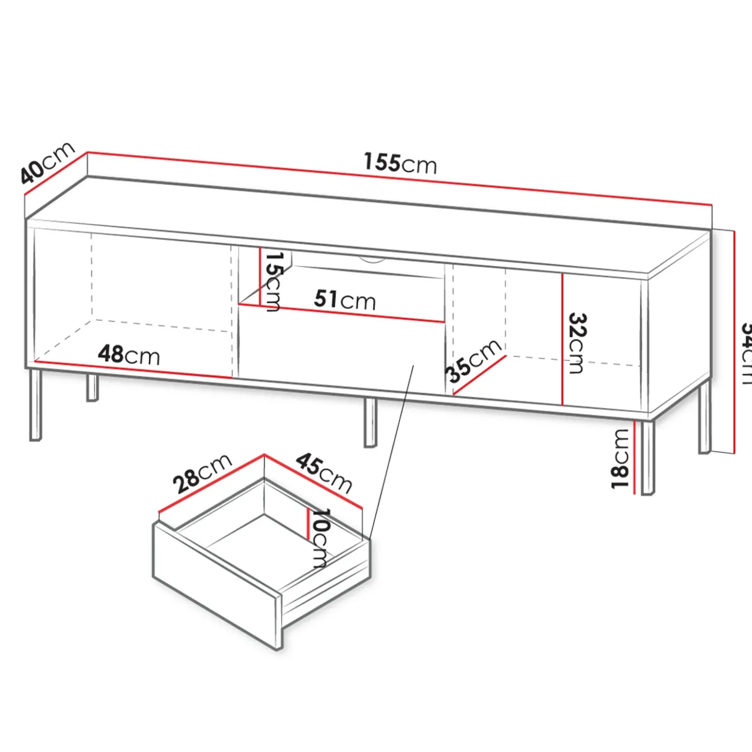 | Dimensioni | L.155 x H.54 x P.40 cm |