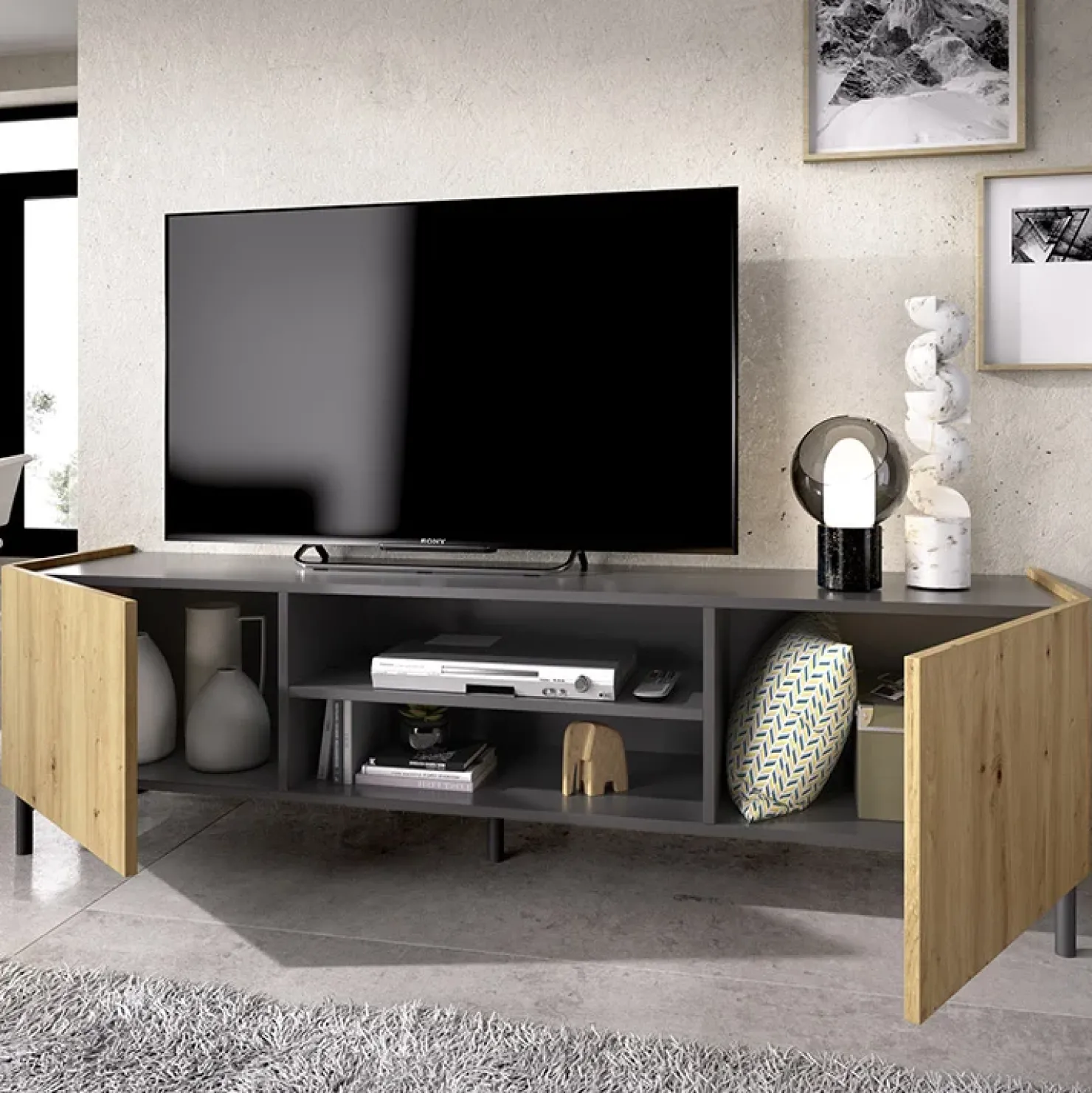Mobile porta TV 161cm legno rovere grafite Mino, prodotto elegante e funzionale per godersi i propri momenti di relax, davanti alla TV, a pieno