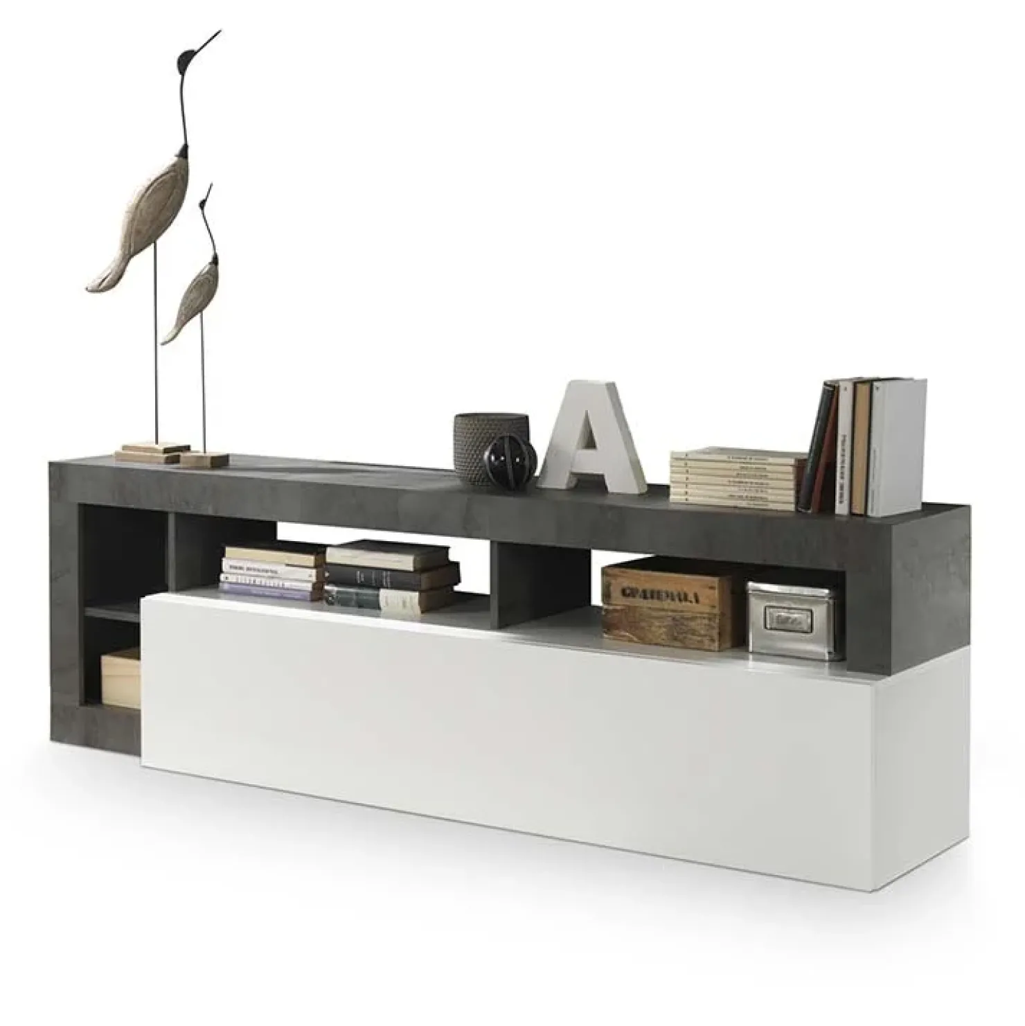Garnero Arredamenti Madia 120x86h cm 2 ante e vani a giorno moderna grigio Zenzero Cemento Hot