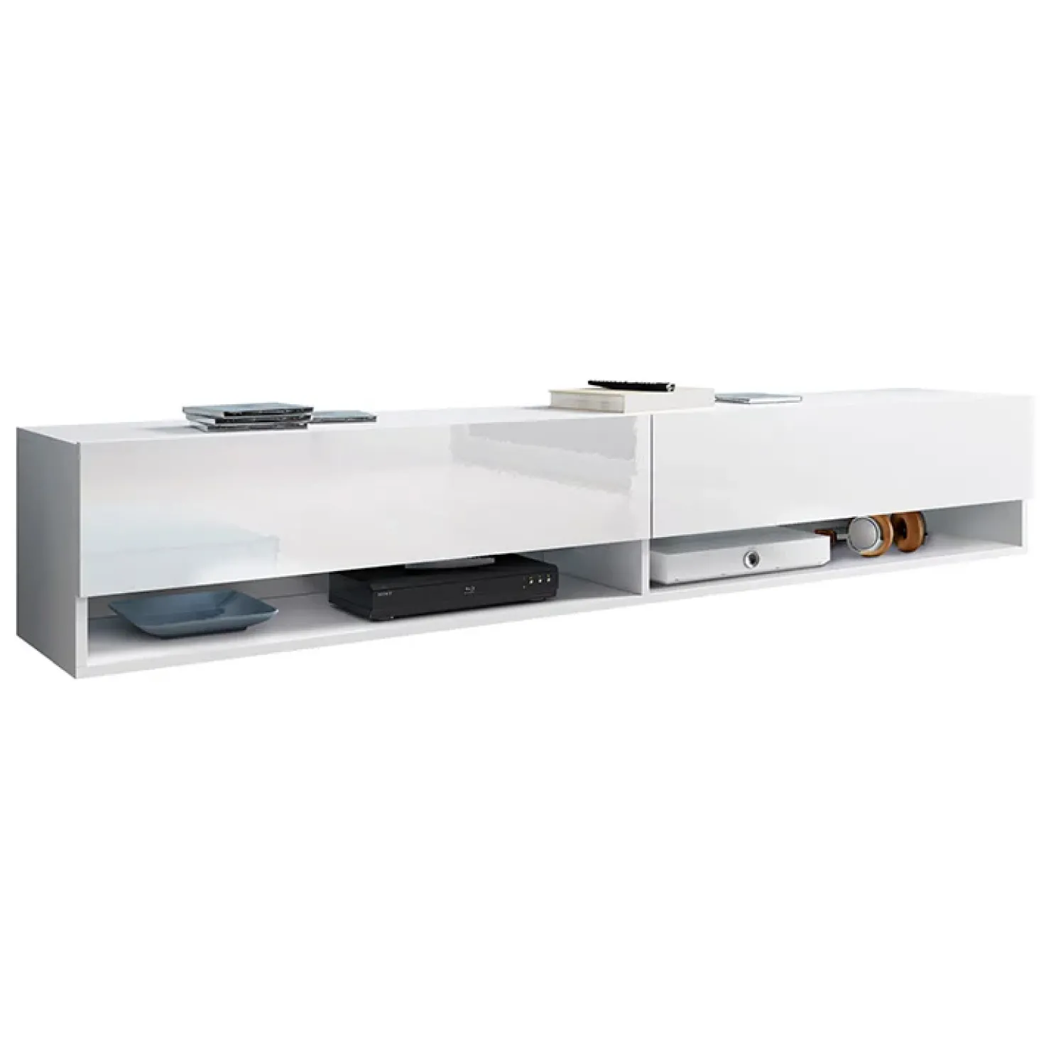 Mobile porta tv sospeso 2 ante 180x30cm bianco lucido Gregoria
