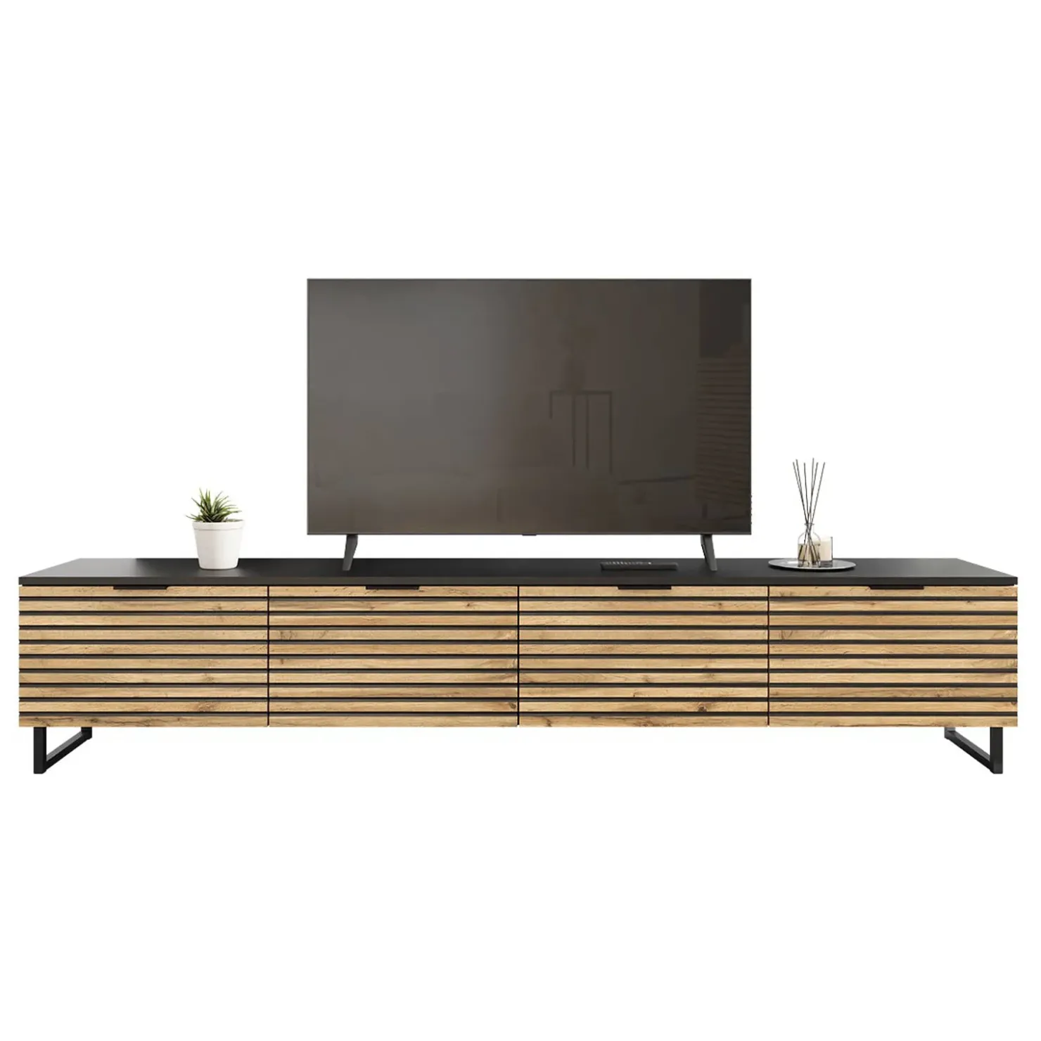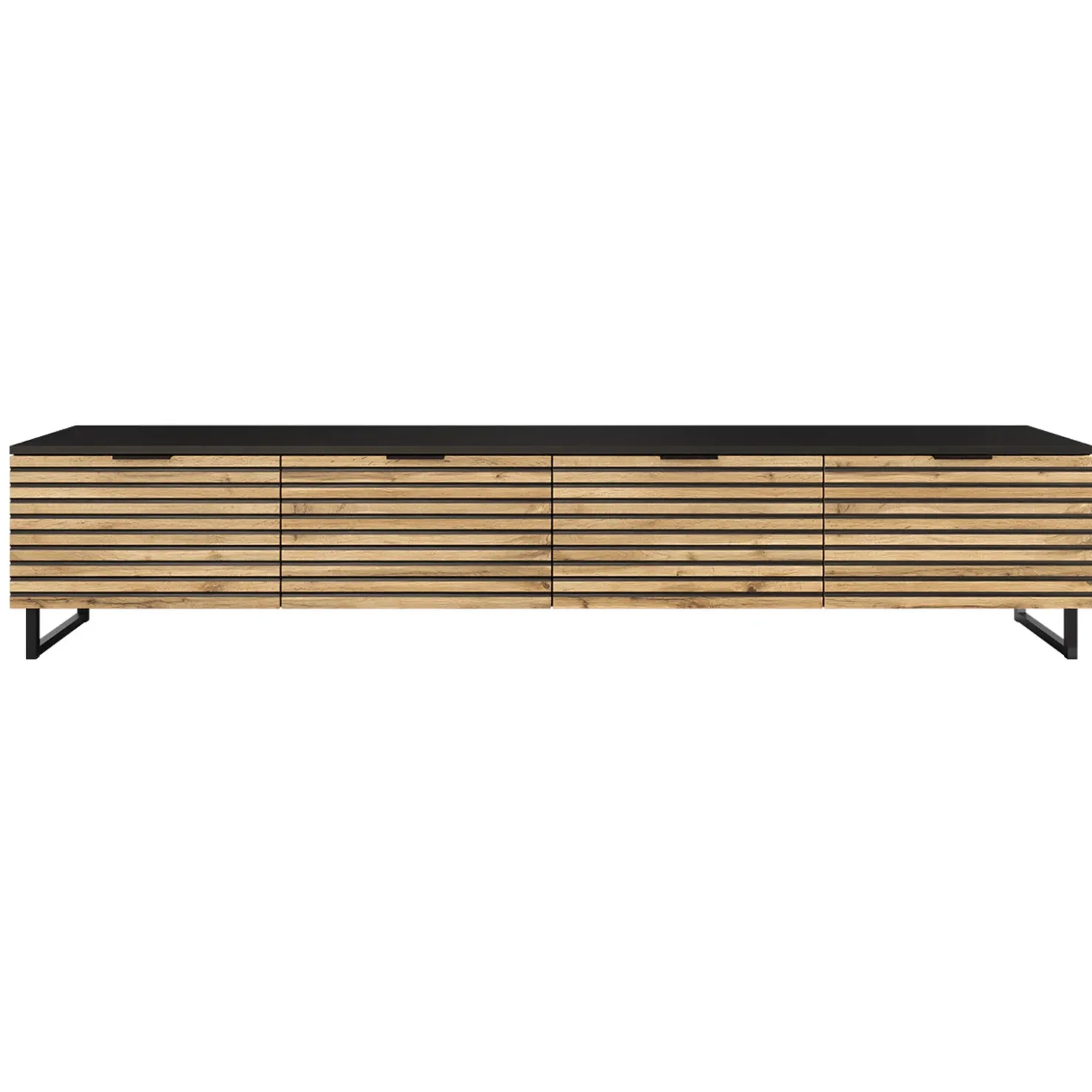 Mobile tv rustico 200x40cm design cannettato rovere nero List