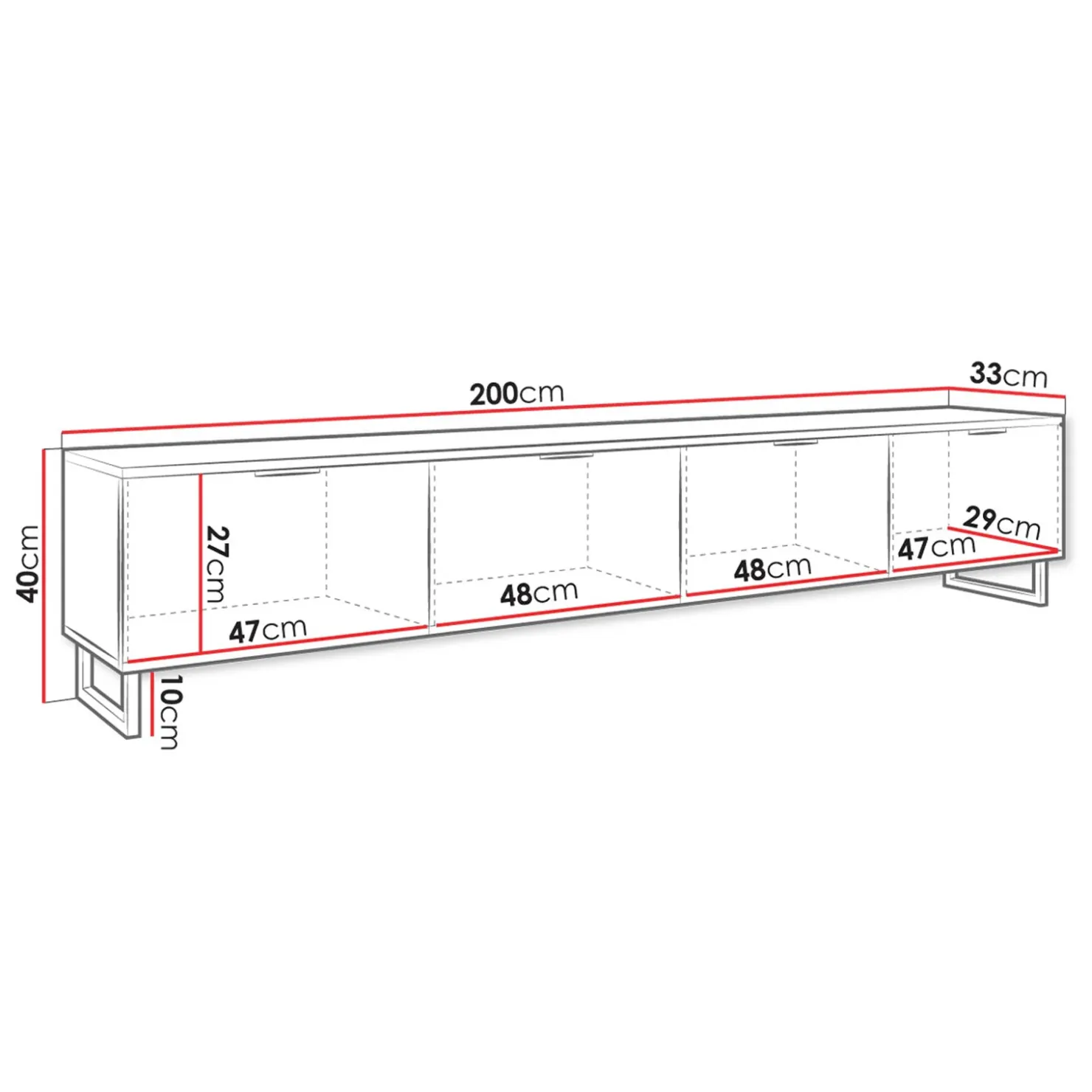 | Dimensioni | L.200 x H.40 x P.33 cm |