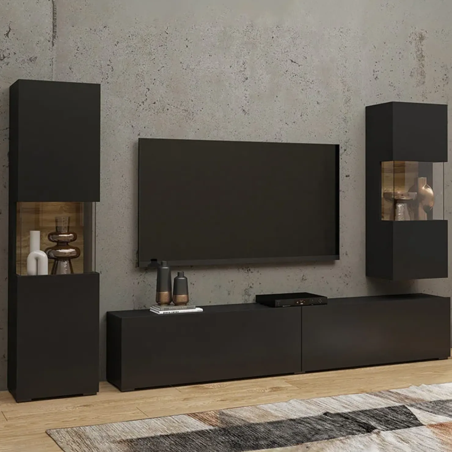 Parete attrezzata 226x140cm nero rovere Fusion 2: composizione perfetta per arredare la propria zona giorno.