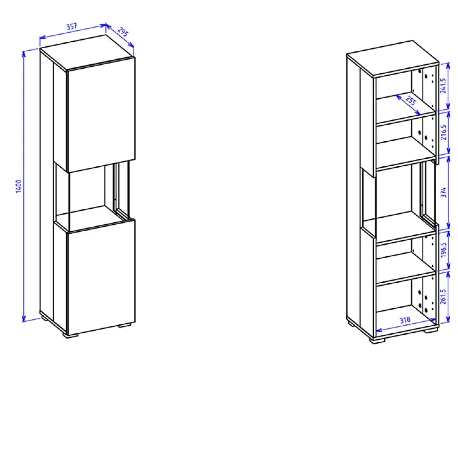 - Dimensioni vetrina da parete: L.35,7 x H.140 x P.30 cm