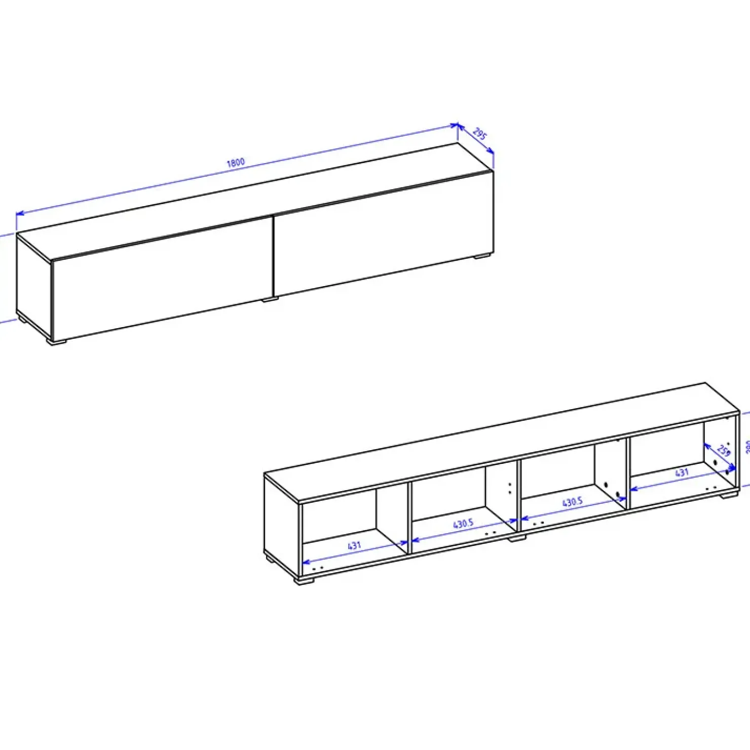 - Dimensioni mobile porta tv: L.180 x H.35 x P.30 cm