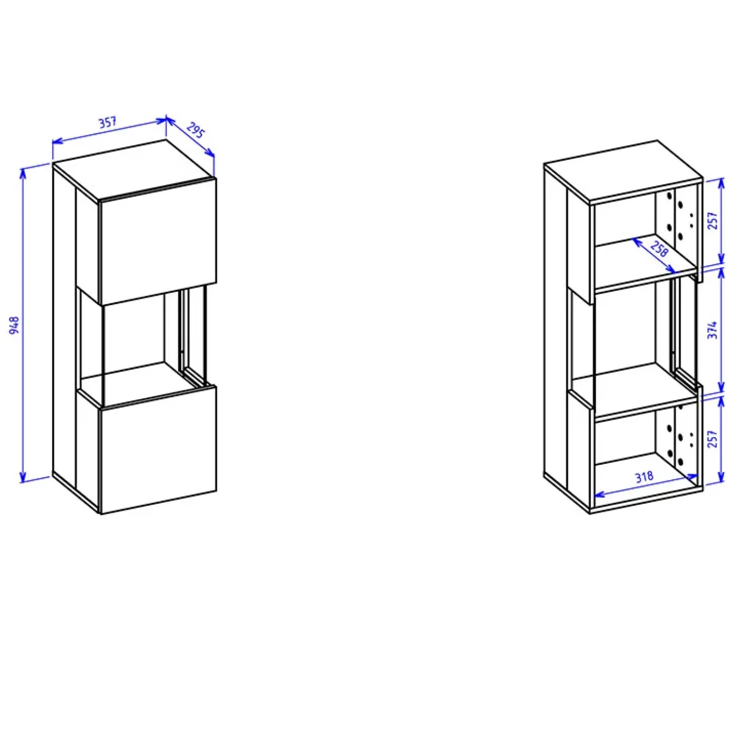 - Dimensioni vetrina da parete sospesa 36x95cm: L.35,7 x H.94,8 x P.29,5 cm