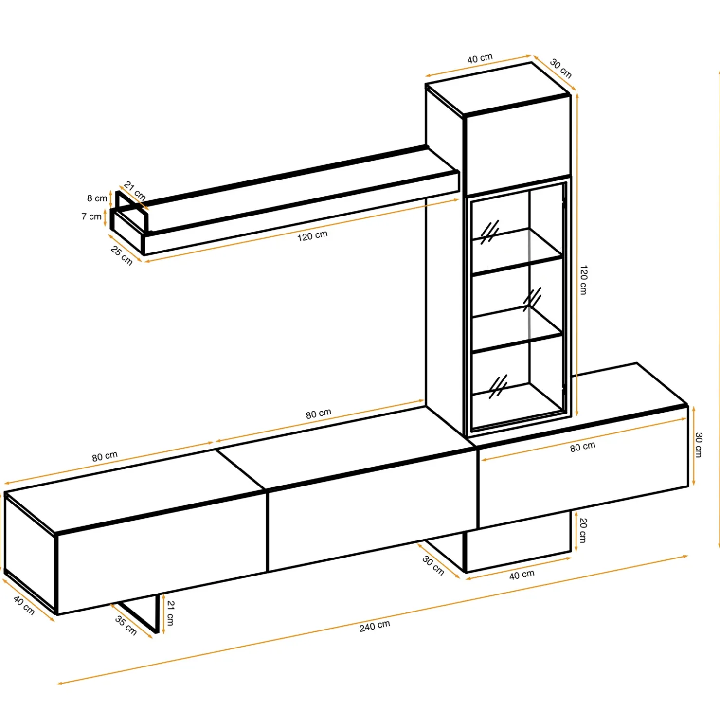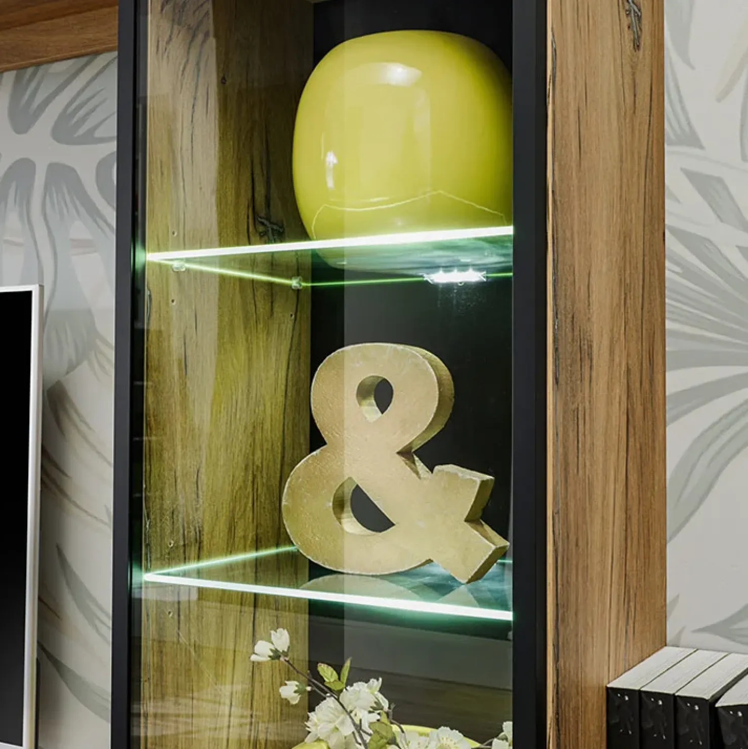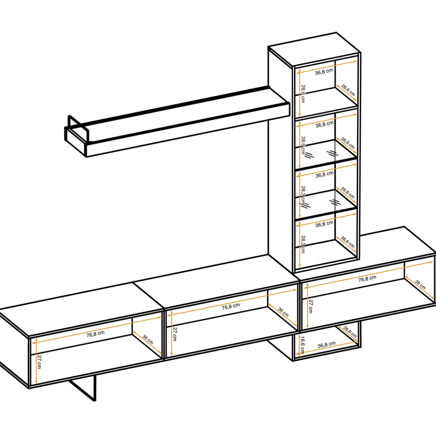 Alla tua casa manca un tocco personale ma non sai di cosa hai esattamente bisogno? La parete attrezzata Dalì è quello che ti serve per rendere l’ambiente accogliente e caldo. La caratteristica principale è l’esaltazione della venatura del legno che conferirà rusticità all’ambiente. La combinazione si compone di una mensola nella parte superiore ed un mobile porta tv nella parte inferiore, che presenta 3 vani con apertura a ribalta. I due elementi sono messi in collegamento da un mobile verticale con 2 vani chiusi e una vetrinetta con all’interno due mensole, per esporre i tuoi soprammobili. Un valore aggiunto è dato dalla composizione reversibile.