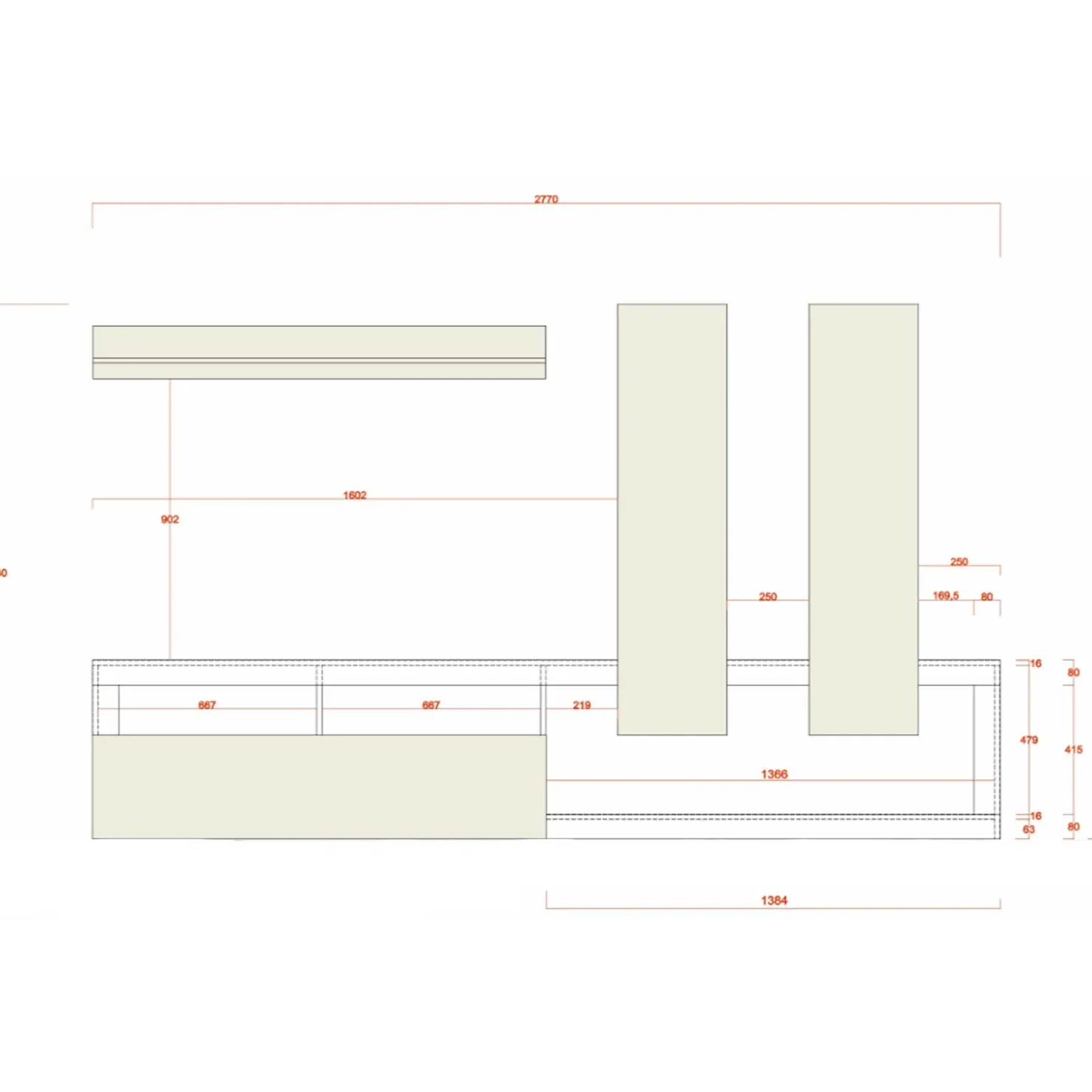 | Dimensioni totali | L.277 x H.48 x P.35 cm |