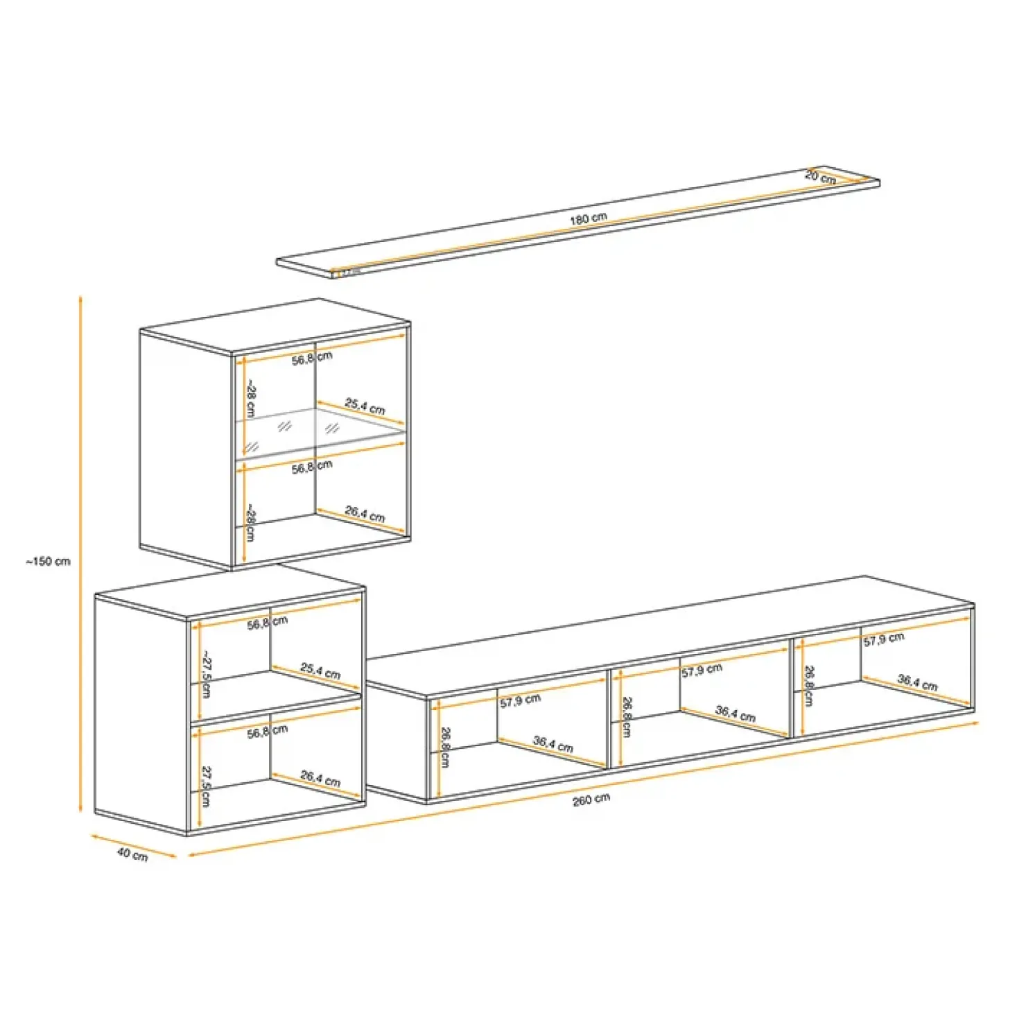 - dimensioni totali: L.250 x H.150 x P.40 cm