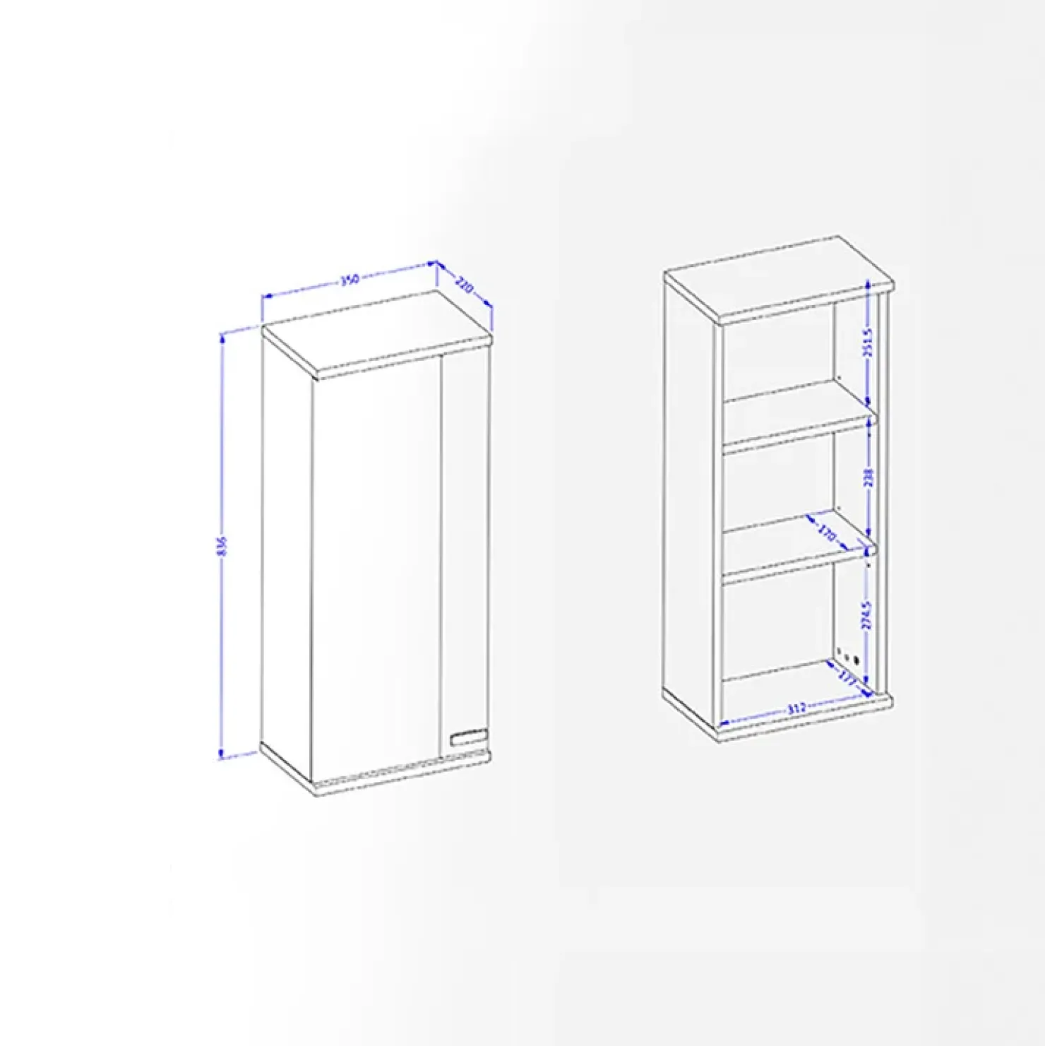 Pensile bagno 35x84cm sospeso 1 anta bianco lucido rovere Crystal