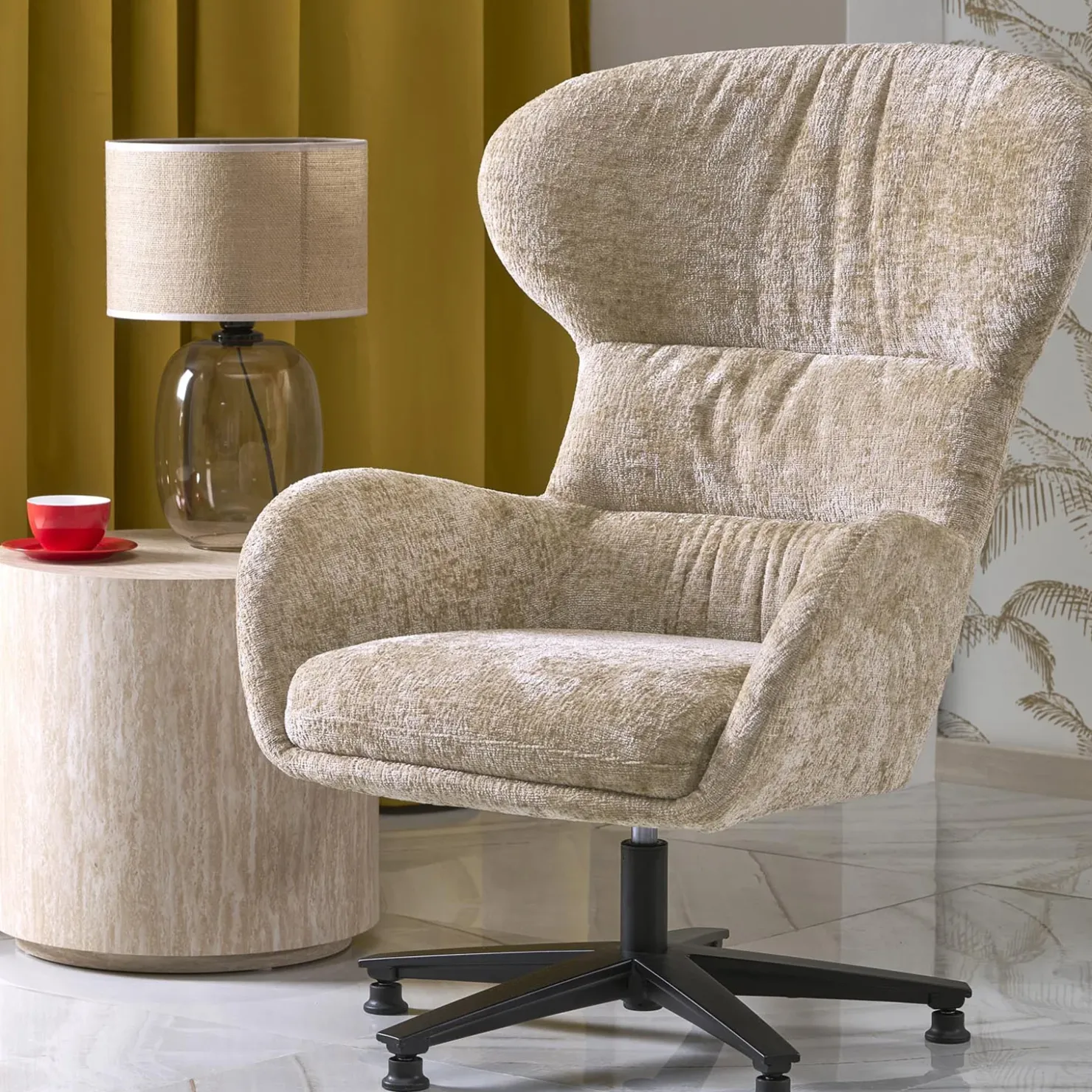 Lasciati avvolgere dalla comodità della poltrona design Mappy, la poltrona imbottita girevole che ti coccola nei tuoi momenti di relax e non solo. Il suo rivestimento beige, morbido e avvolgente, regala alla tua casa un tocco di calore discreto e raffinato, perfetto per ambienti moderni o dal gusto classico.