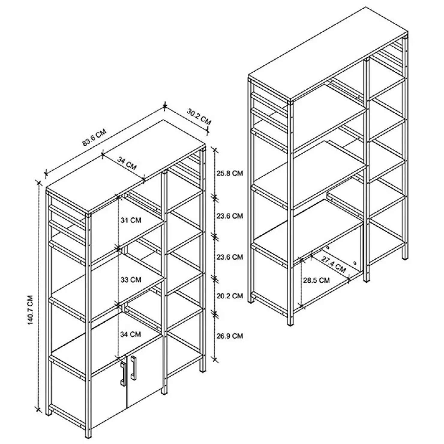 Garnero Arredamenti Scaffale 84x141h cm 2 ante industrial rovere metallo Bioko Clearance