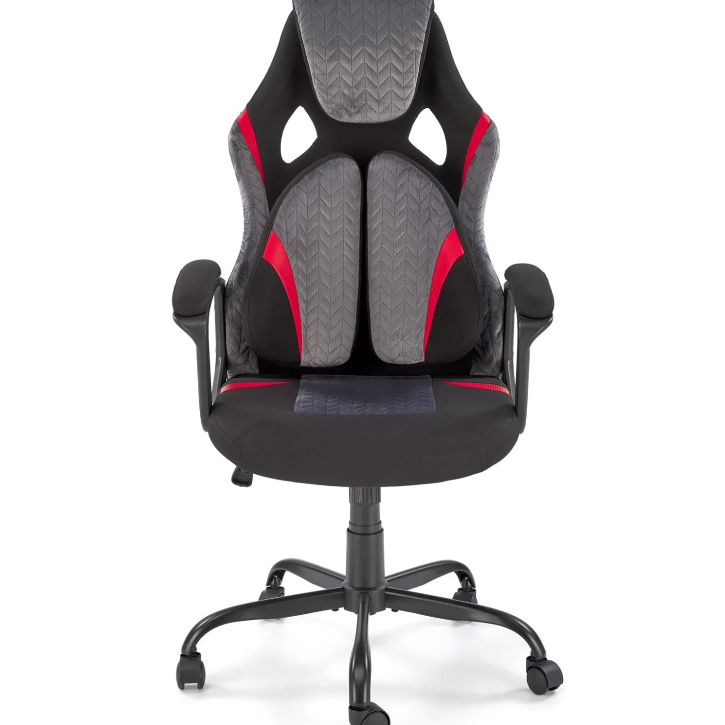 Sedia da gaming ergonomica con supporto lombare in tessuto grigio nero rosso Buzz