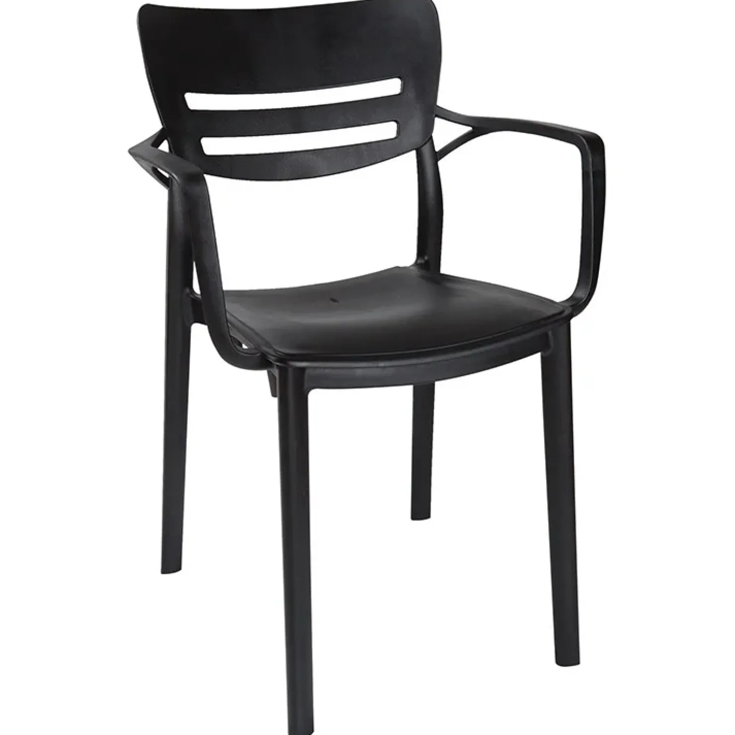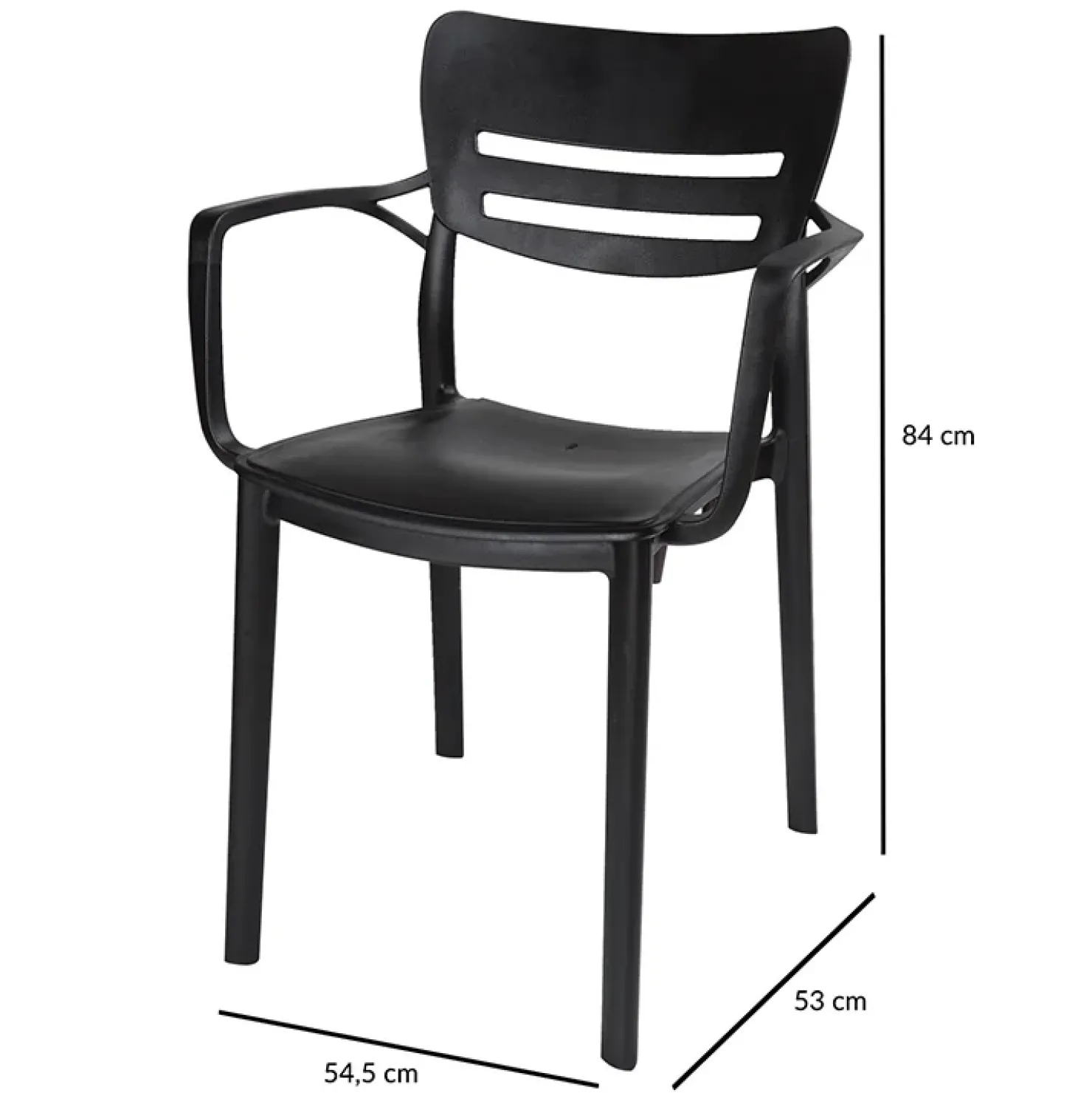 Sedia da giardino esterno bar dehors moderna in polipropilene con braccioli nera Gemma