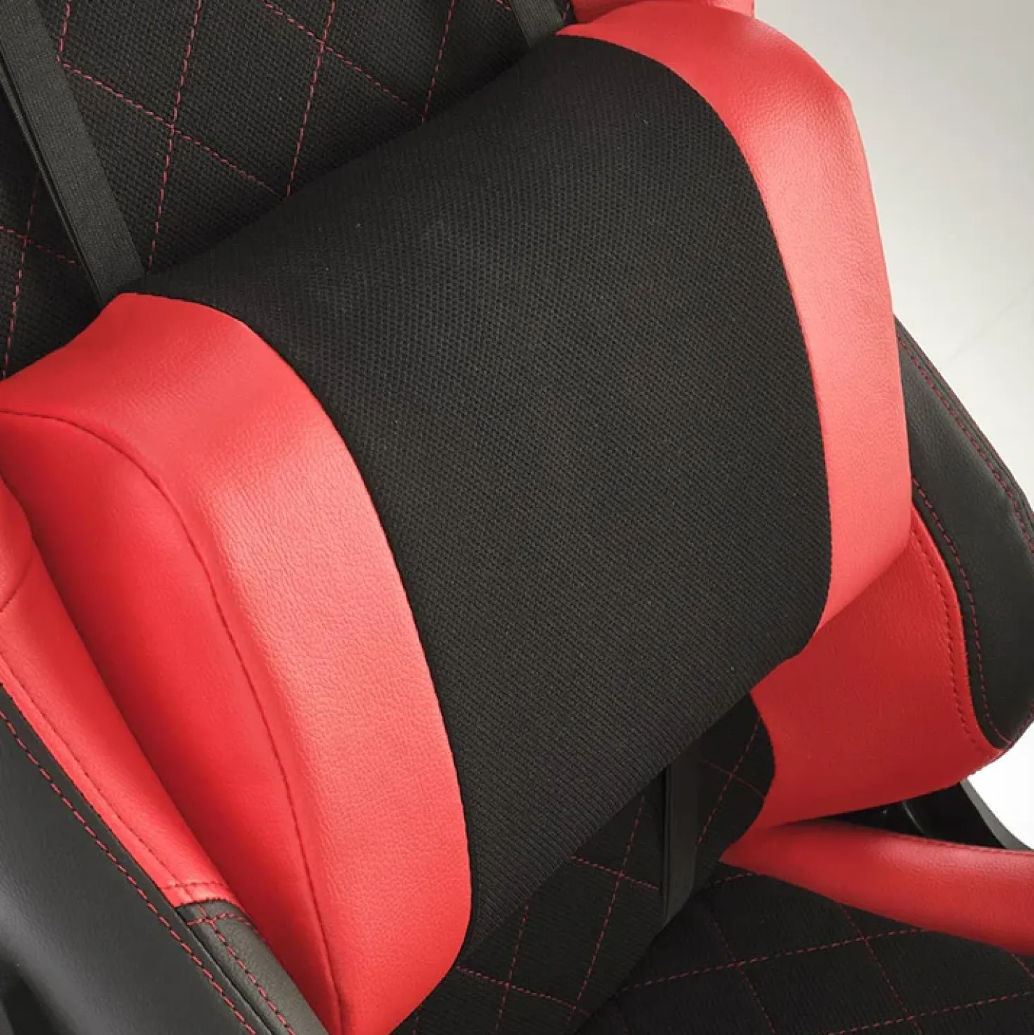 Sedia gaming con ruote regolabile in tessuto rosso nero Degel, grintosa sia per lavorare che per giocare .