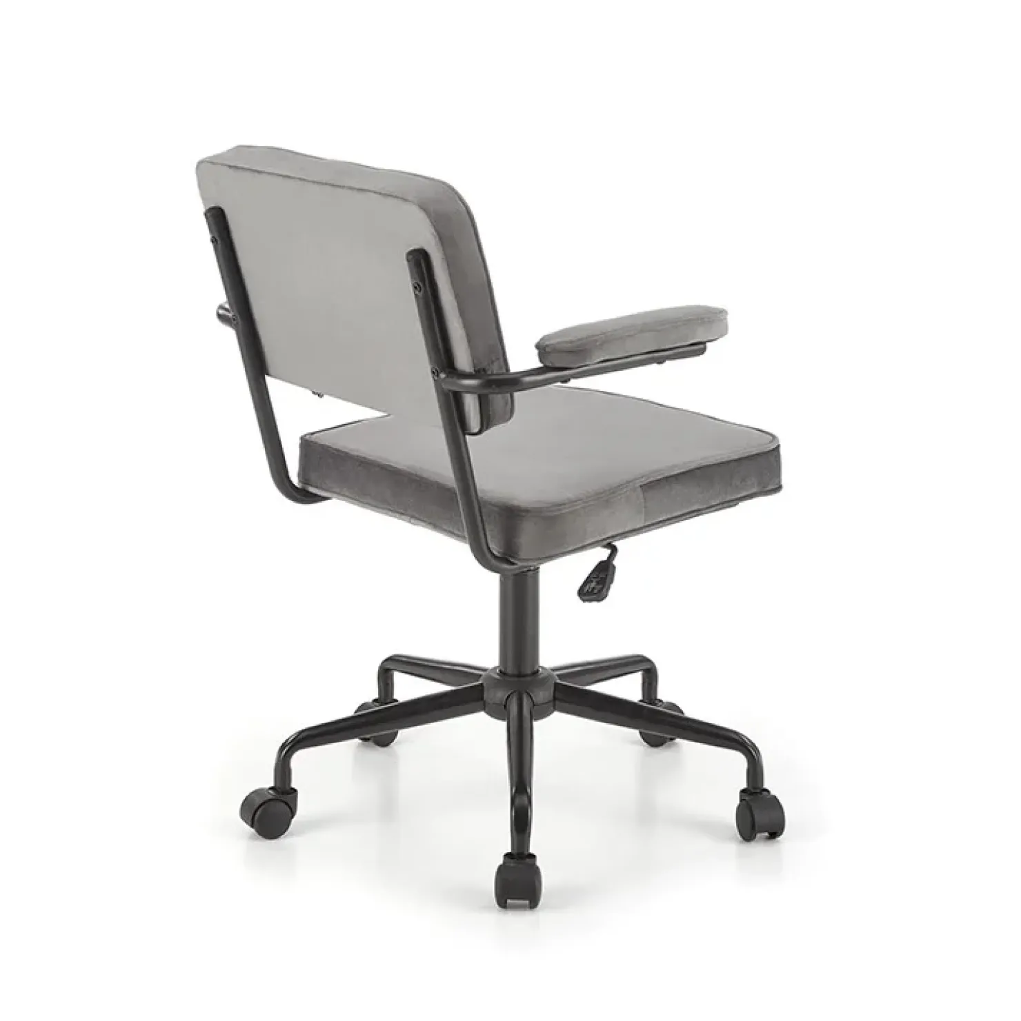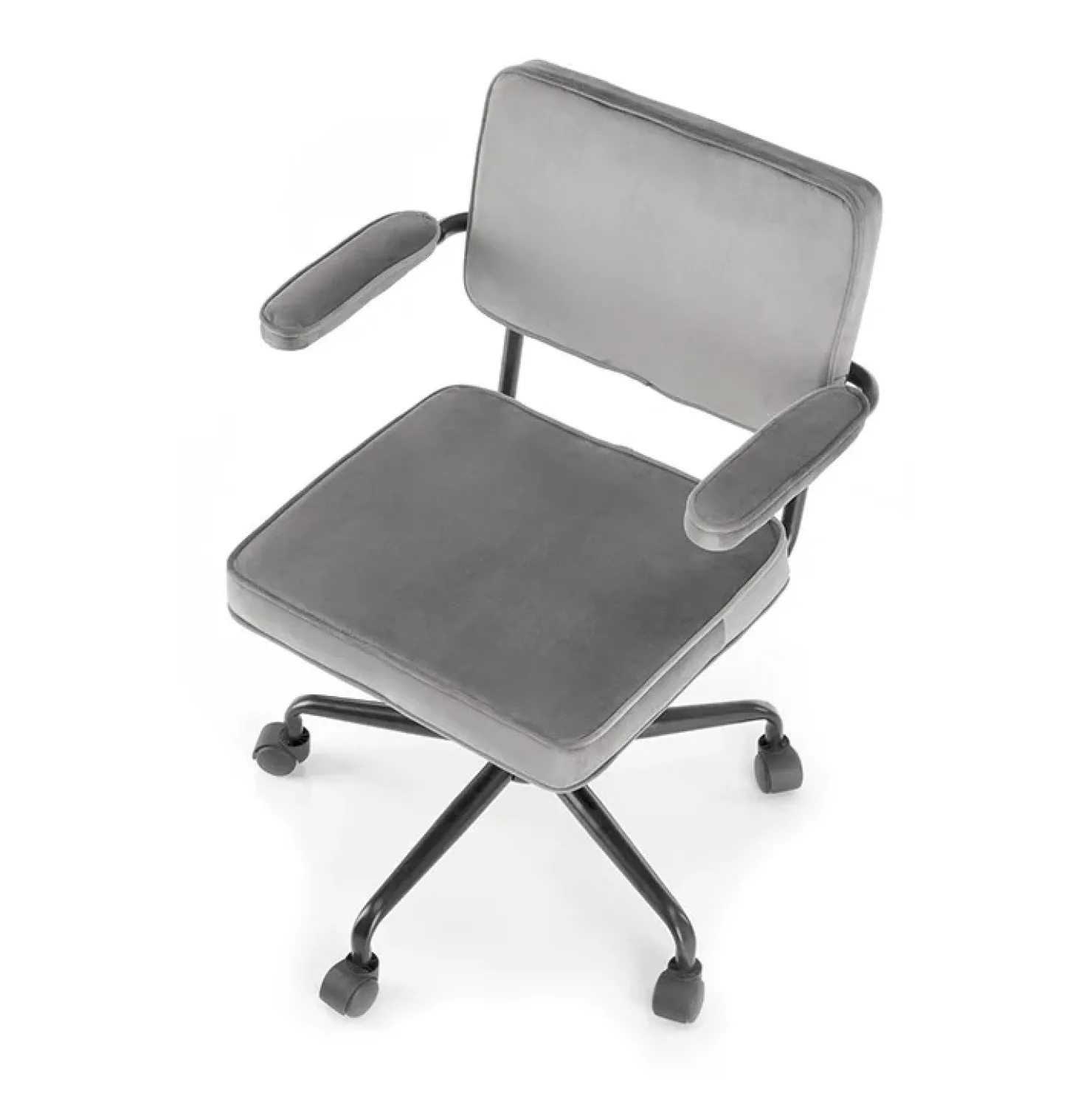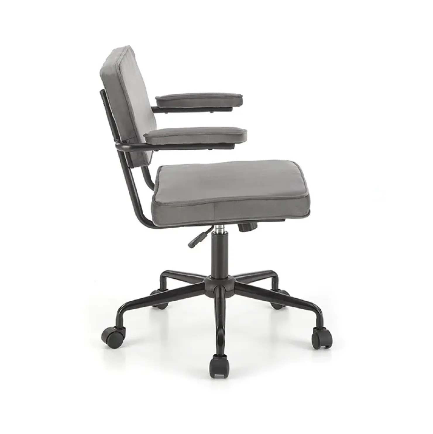 Sedia moderna girevole con braccioli in tessuto grigio Fuego, comoda per lavorare o per studiare.